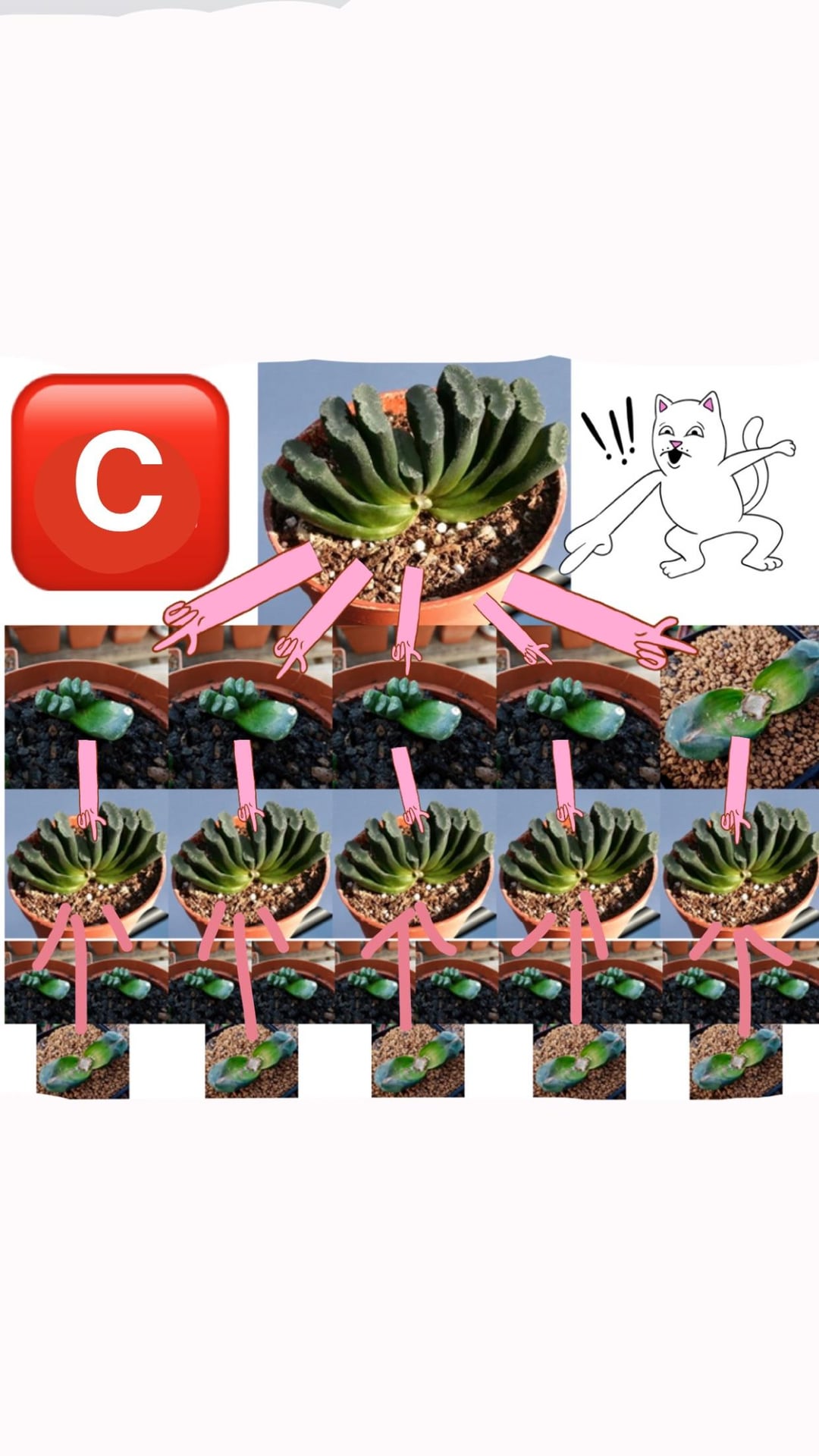 Combine A and C. Big clump remove one or two plants from the clump. Leaf prop the plants that were removed and leave the rest of the clump together so it can hopefully continue to push out pups, but will also be able to size them up quicker.