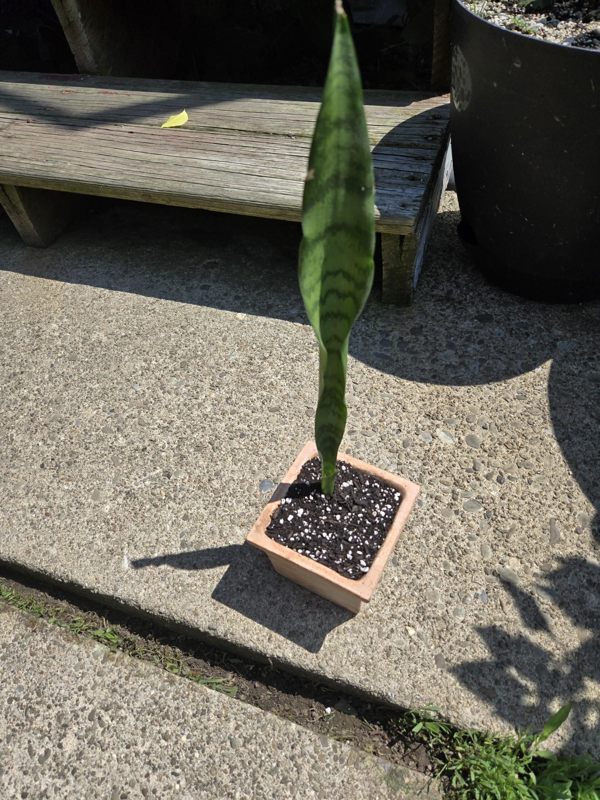 My snake plant was abandoned in the corner of a room behind a chair because it didn’t grow for over a year with it’s previous owner. One single snake, just like this but in a bigger pot.