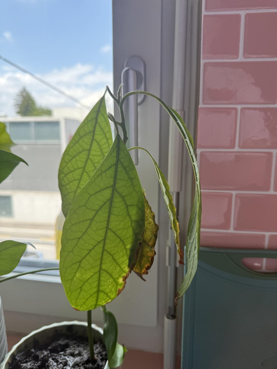 I have an avocado tree like that, when her leaves droop like that its a sign she needs water. She’ll usually spring back up within a few hours.