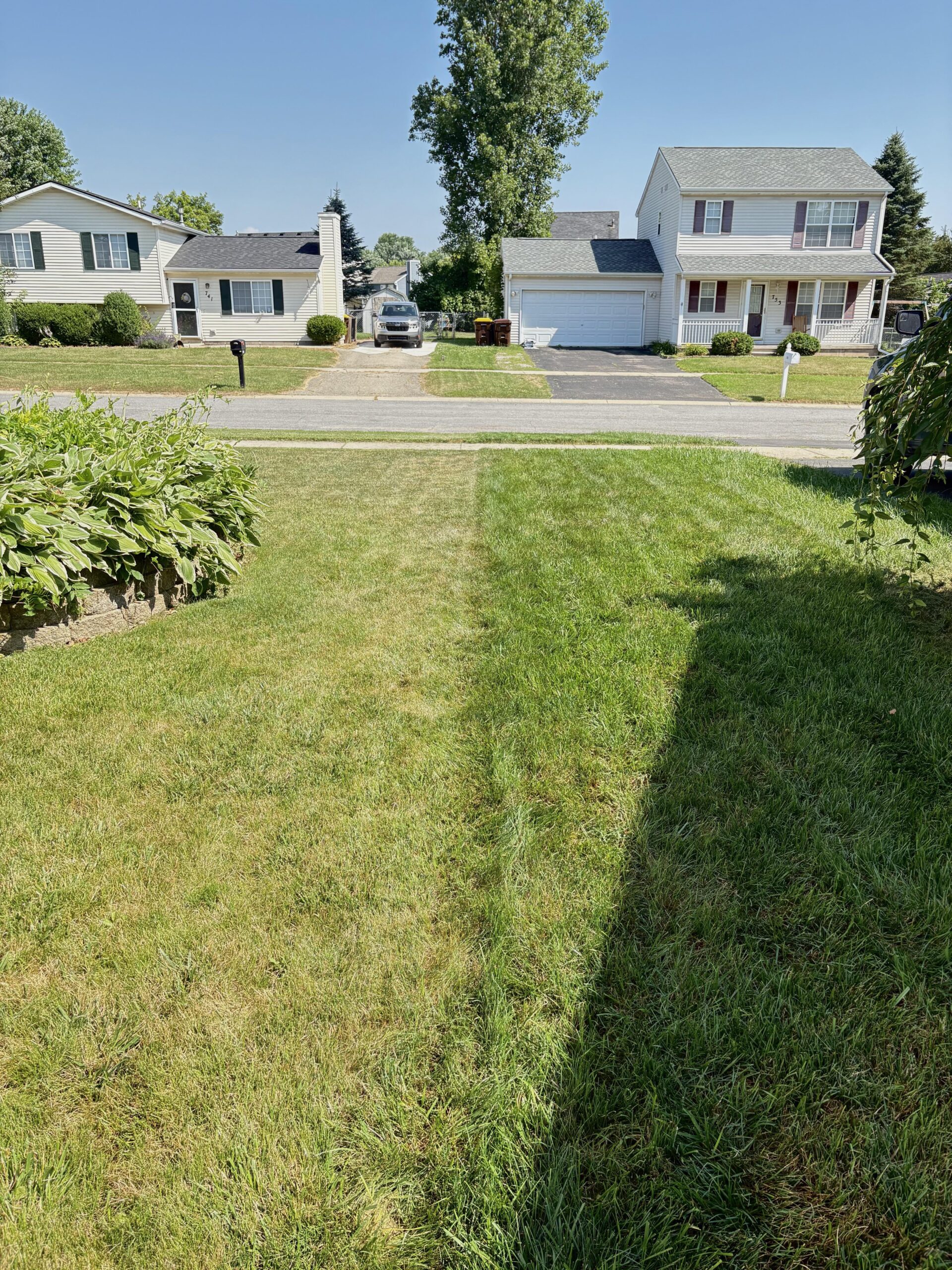 My grass is taking a beating just like anybody else in my area from this long drought + high temperatures but I haven’t watered my grass once and have just been cutting it high is this is the color difference between my neighbors and mine. Moral of the story, tall grass is happy grass.