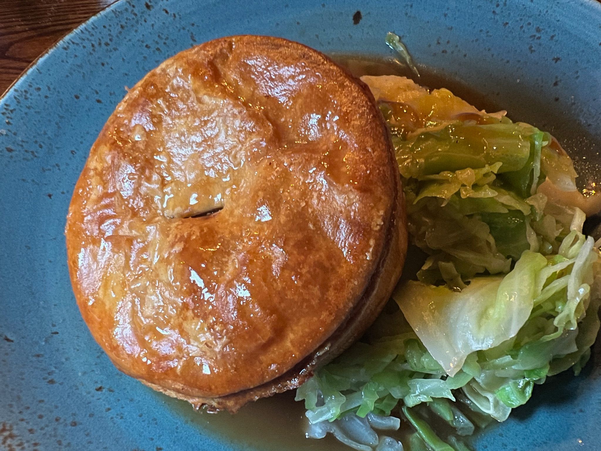 These are made for the chain and are exceptional – shortcrust pastry with a full, flavoursome filling. It comes with boiled cabbage (a personal favourite), mashed potato and gravy. Utterly delicious. This is a stand-out dish.