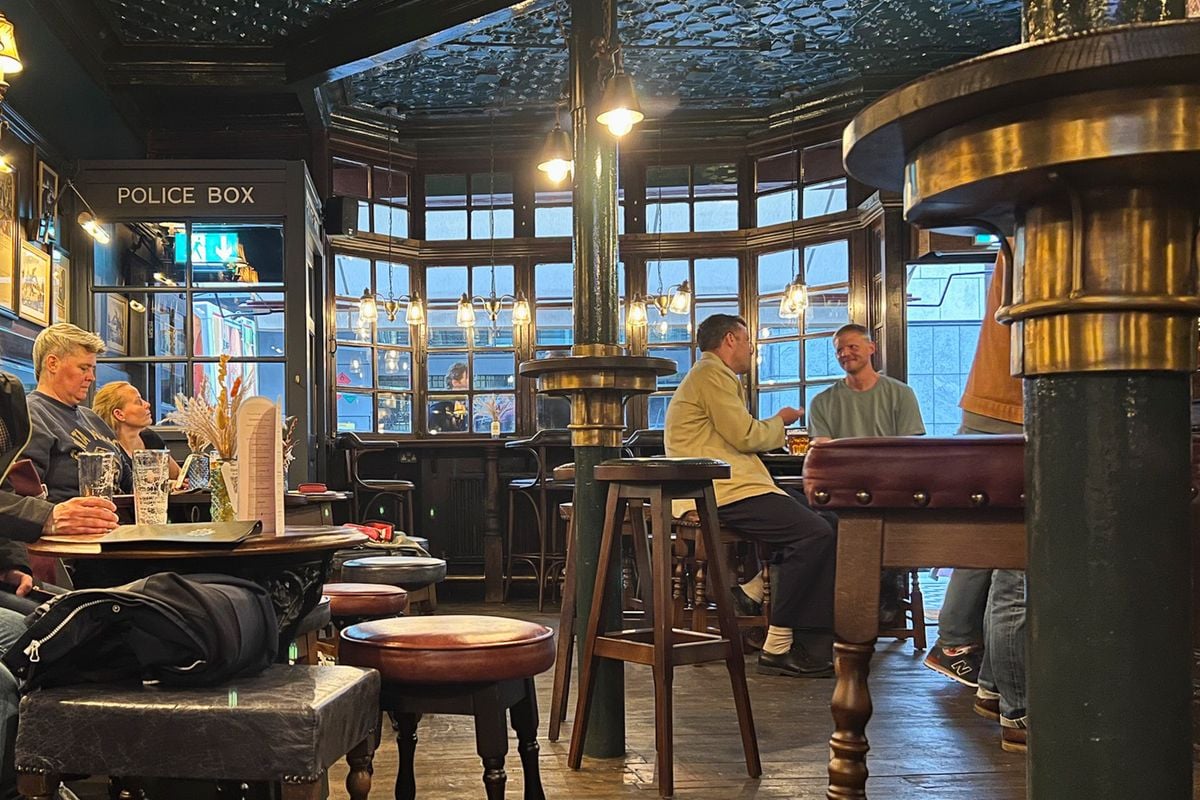 The interiors are dark, yet warm and welcoming. The walls are lined with old prints and photos, the ceiling with deep, glossy anaglypta. It’s ideal for cosy pre-theatre drinks. Each floor offers different nooks and spaces to hunker down in or take over for a private function – and there’s even a roof terrace with pretty views.