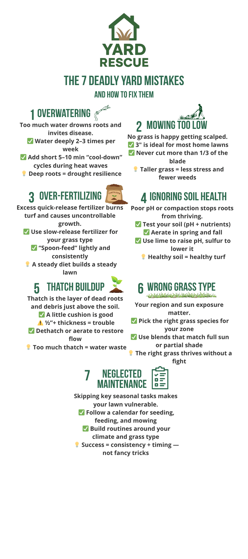 This is version one — “The 7 Deadly Yard Mistakes” — a very basic, beginner-friendly checklist I wrote for folks who don’t have any background in turf.