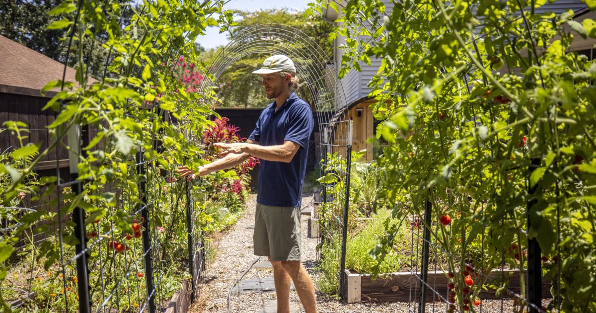 He owns Permanent Yield, a Charleston landscaping firm that creates gardens full of nutrient-dense fruits, veggies, herbs and medicinals. Most of his clients are affluent and have big back yards. Sinderman says this one is 7,260 square feet. But he wants to reach out to lower-income folks who want more nutritious, better-tasting produce — even if the only land they can farm is a few dirt-filled pots on an apartment balcony.