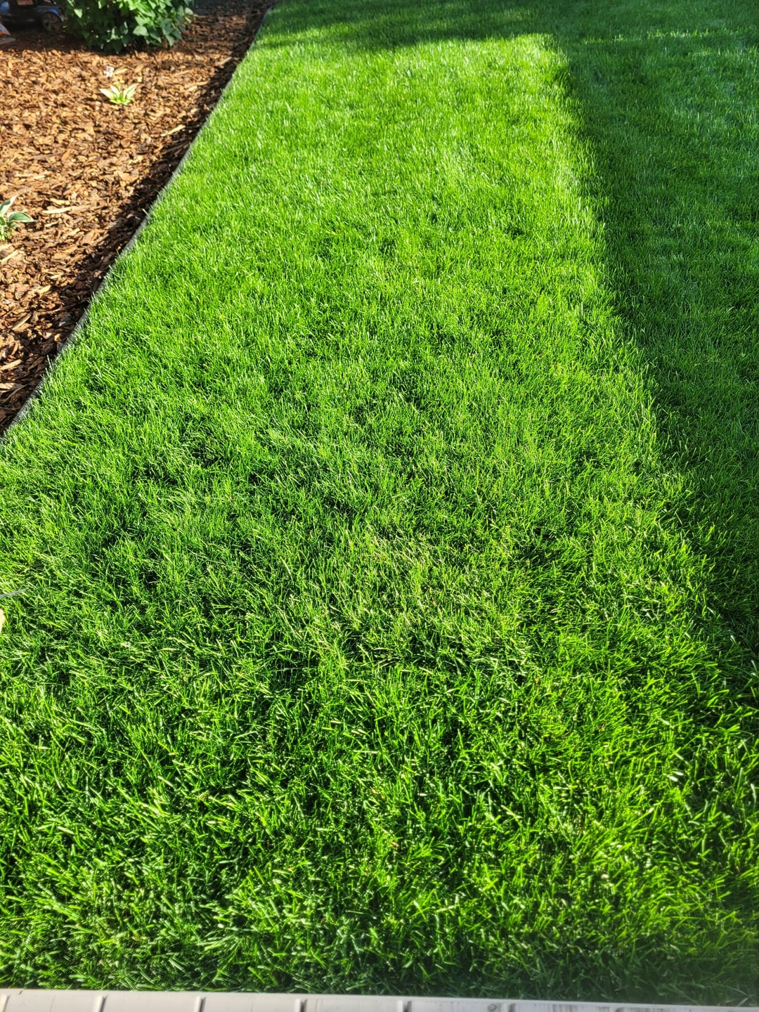 I installed fresh KBG sod 5 weeks ago on June 1st. I wasn't fully satisfied with a consistency of the sod delivered, half the pallet was very thick/lush while the other half was noticeably thinner/lighter/with sparse patches…..I almost complained. 1 month later, it's completely homogeneous and I couldn't be more pleased. The weather has been cooperating nicely, with ample rain and no super hot/dry spells thus far. Currently mowing every 3 days at a height of 3.5". This sub inspired the reno and has made it my mission to keep my little 800 sqft patch looking as pristine as humanly possible.