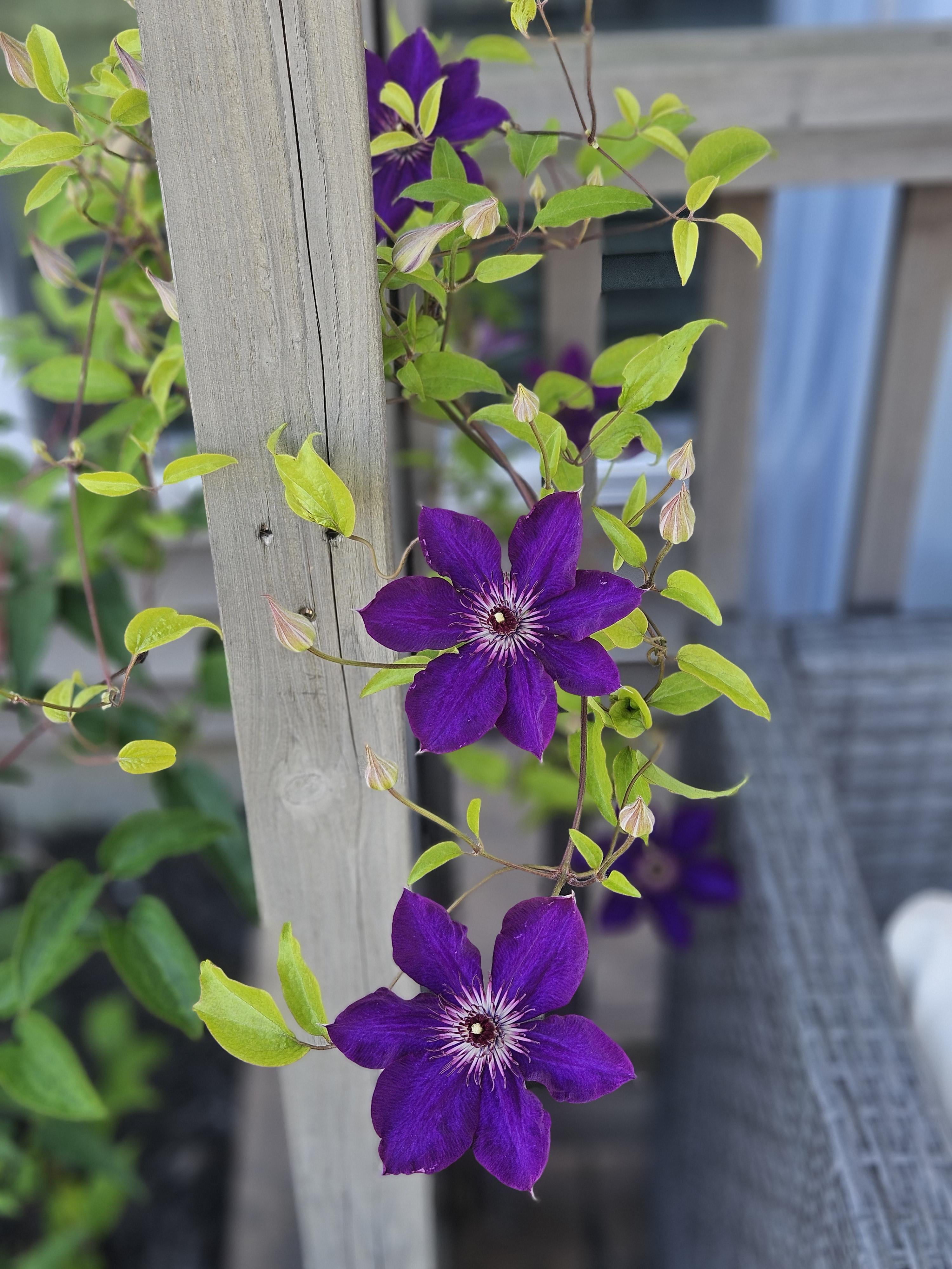 Living_Onion_2946 3 months ago Looks like Jackmanii to me! I have one too. Very prolific bloomer! Lovely pic!