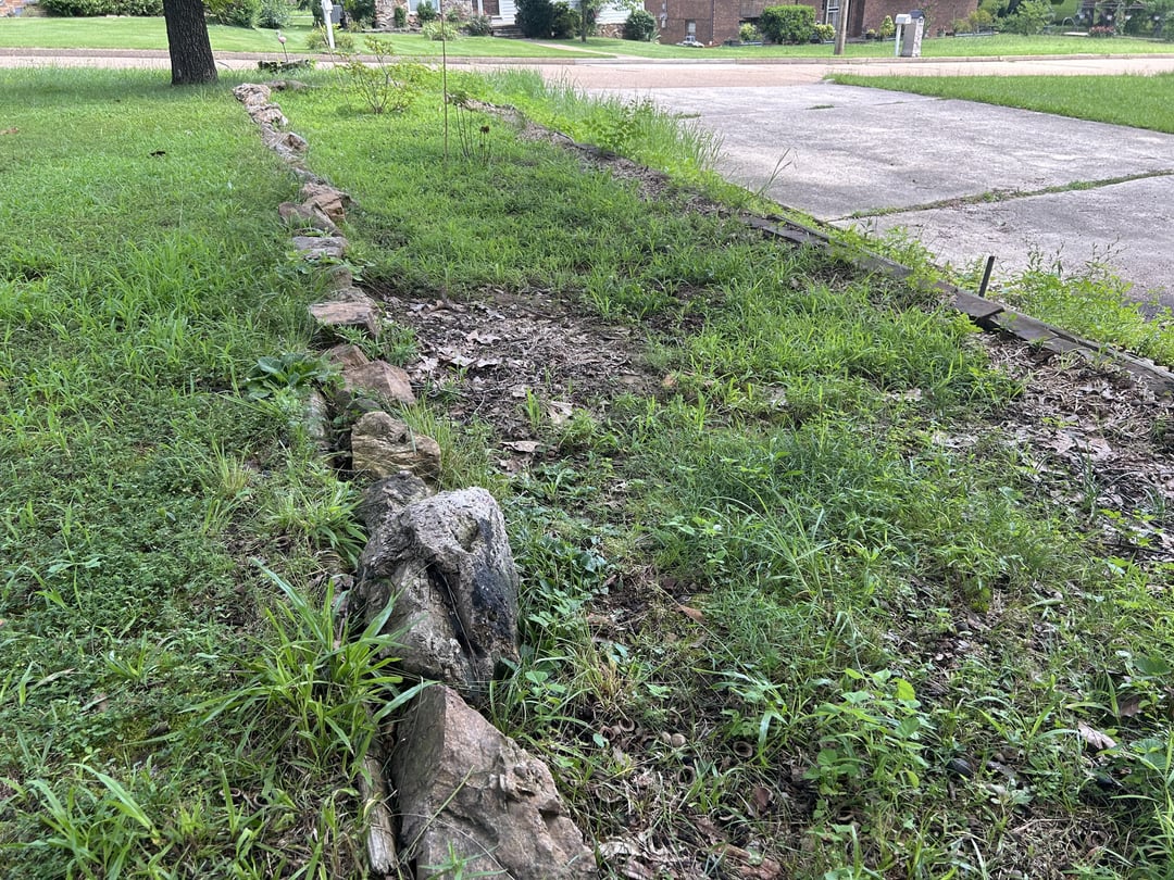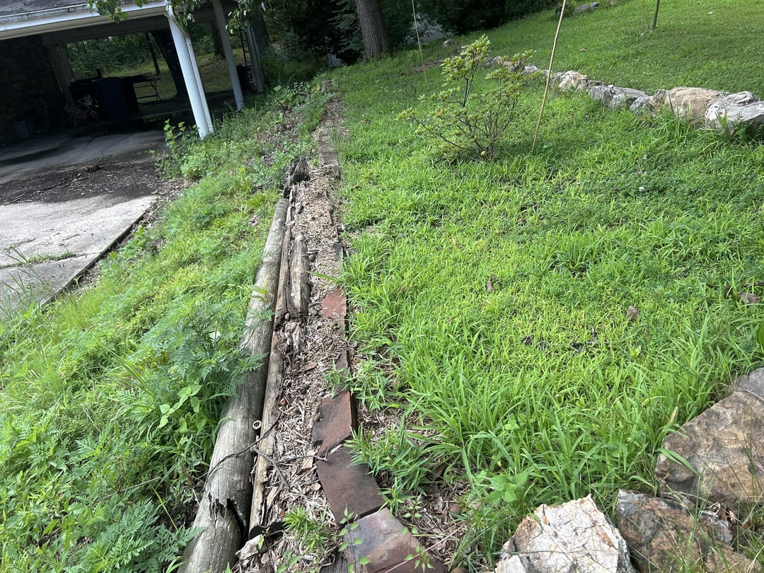 I’ve sectioned off a part of my yard with rocks to plant some azaleas in the fall. My property line is separated by deteriorated railroad ties. On the other side of the ties is my neighbor’s property, which slopes off to their driveway. Is there anything I can do on my side of the property to further prevent erosion? I’ve placed a row of repurposed bricks alongside the old railroad ties, and then layered some (natural) mulch over top. I’m working on cultivating some composted soil, and will build up the garden patch with it once I plant the bushes. But as I add more soil to the area, I keep noticing holes reappear. And I’m beginning to wonder if there’s something more that I’m gonna need to do to stop the erosion, since the yard basically drops off when it reaches the property line. I was considering adding another row of large rocks on top of the bricks. Or purchasing larger blocks. New railroad ties are a bit cumbersome. I’m trying to do what’s in my control, on my side of the property line. Suggestions welcomed!