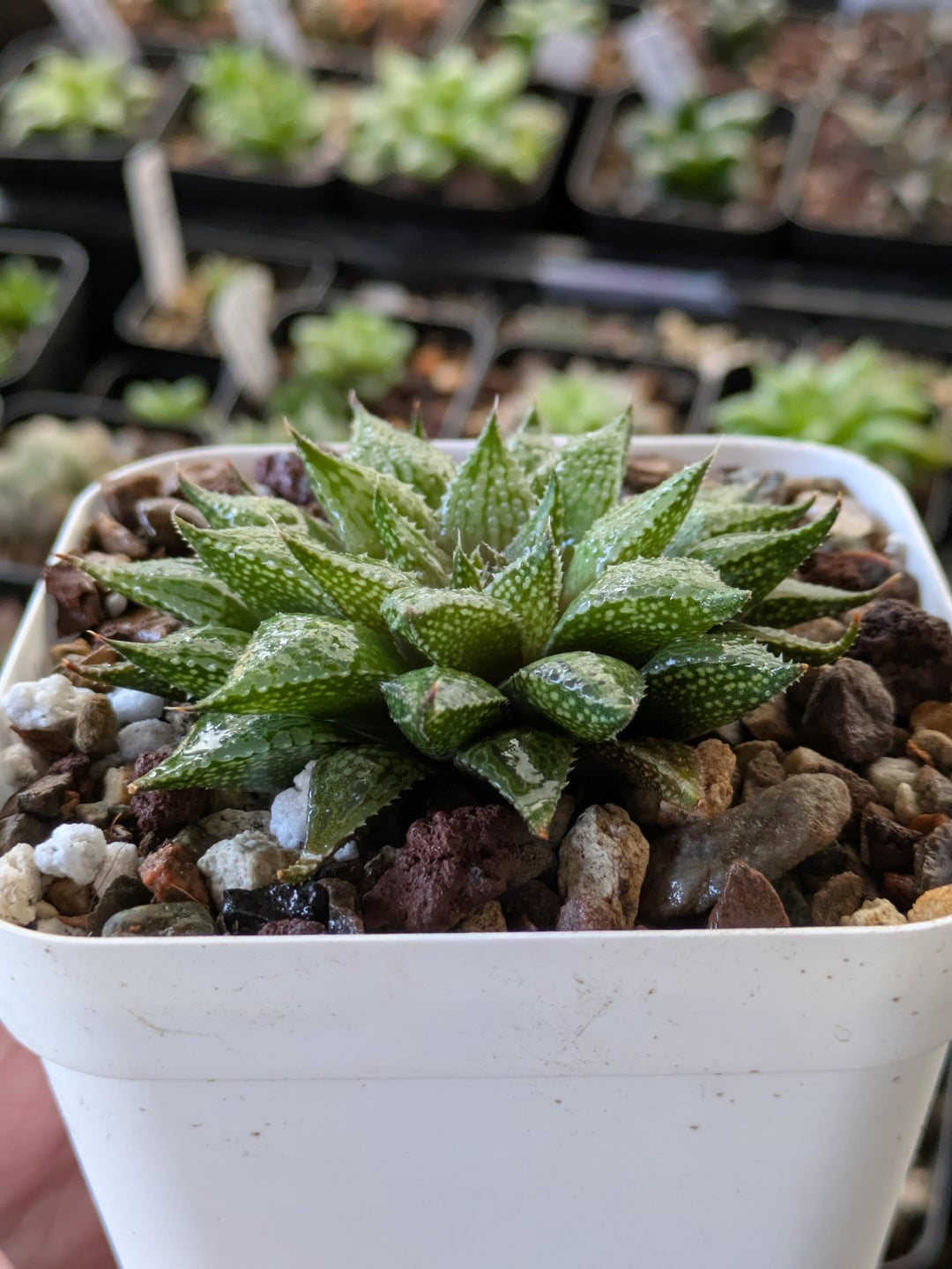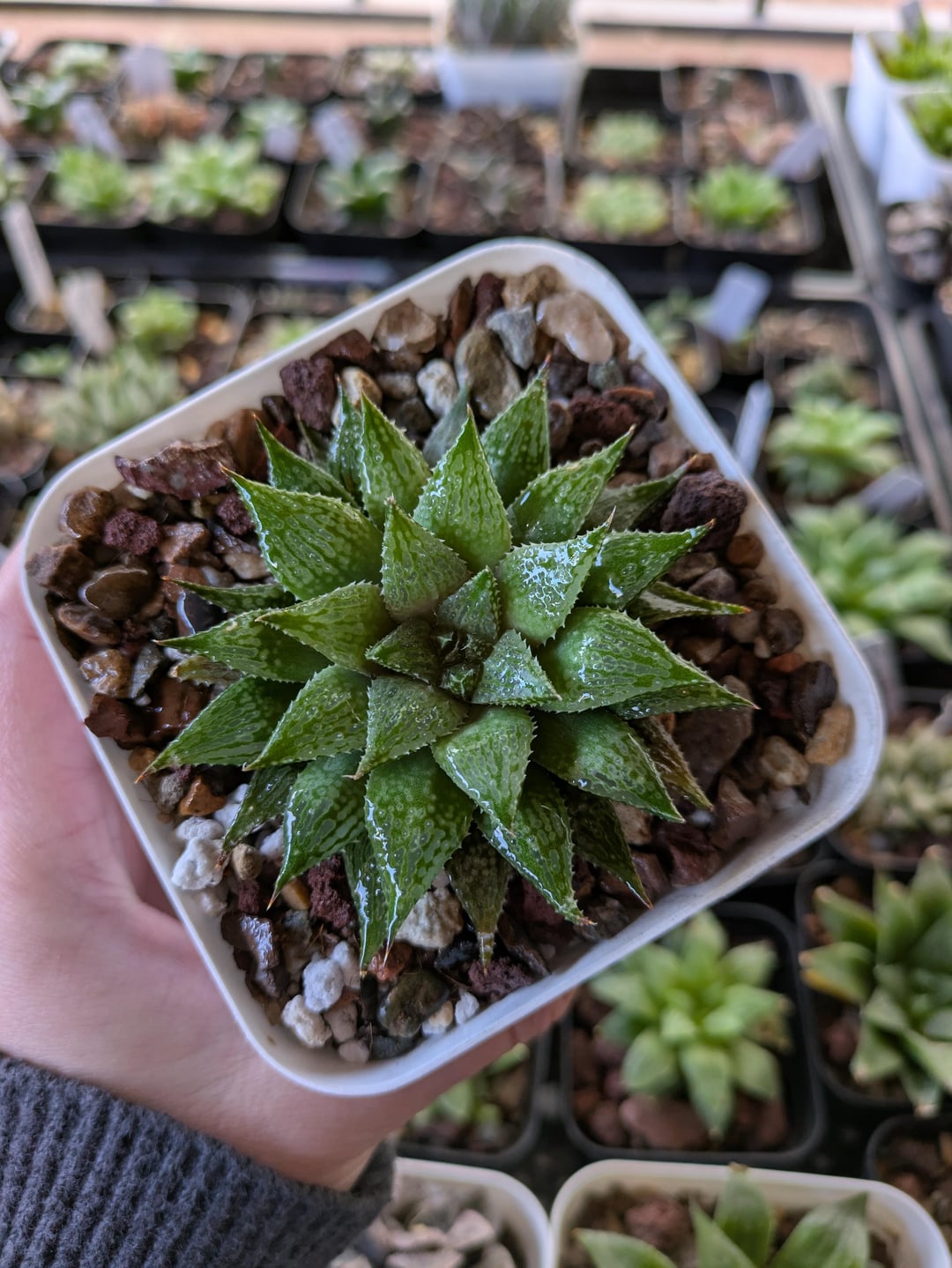 Pumice, lava rock, Seramis. Most of my Haworthias grow fine in inorganic substrate, only blackburniae doesn’t seem to like it, so I mix in good amount of ordinary houseplant soil for them.