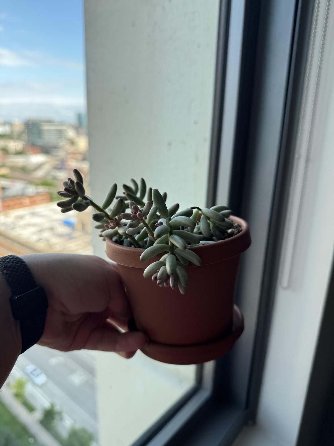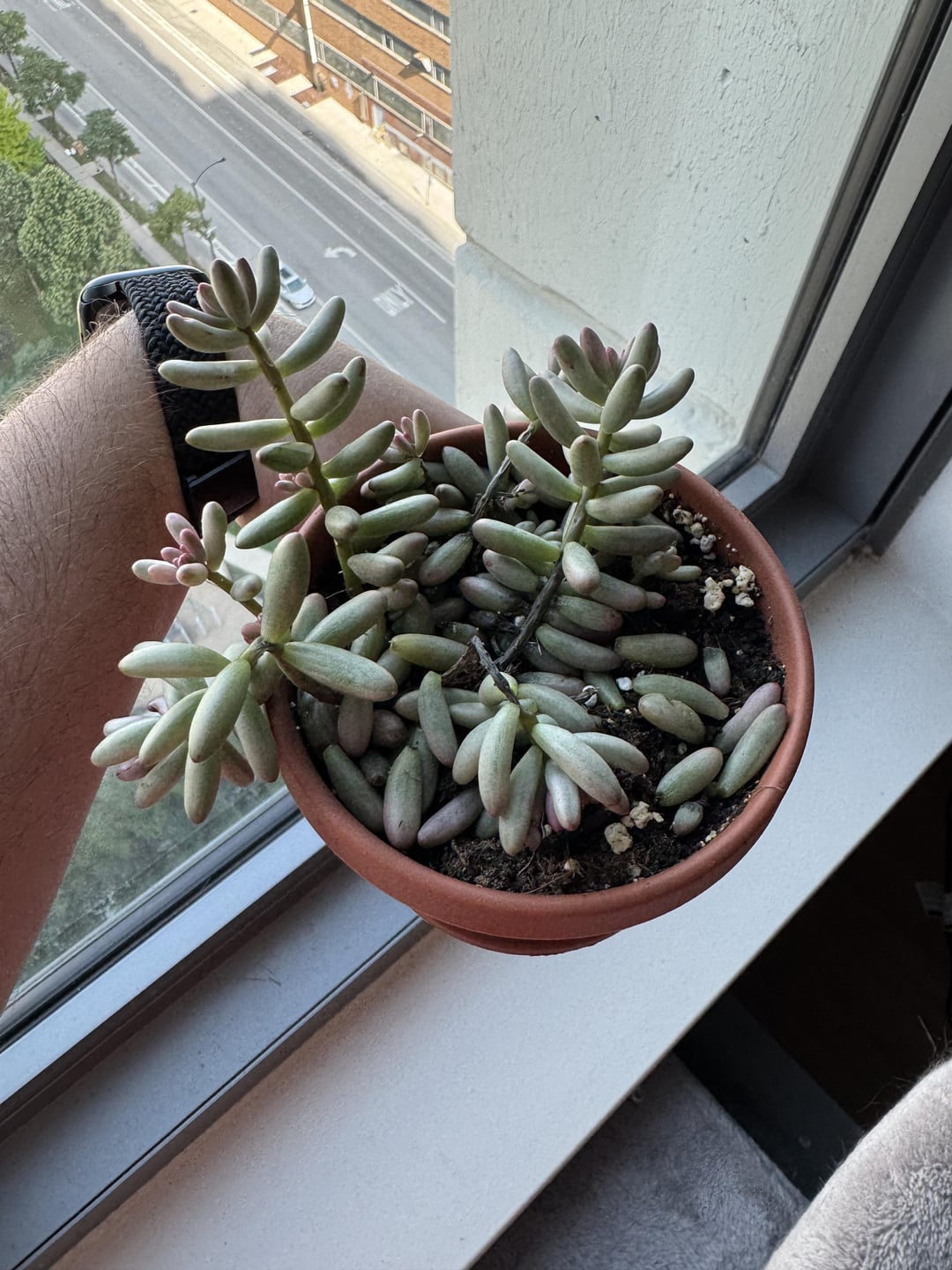 I got this jelly bean succulent from the farmers market about a month ago. It looked great when I bought it! I replanted it after a few days of bringing it home and it was fine for about a week, but last week the little jelly beans (I don’t know what else to call them) keep falling off and the stalks keep wilting. It seems to branch off new growths, but I don’t know why the others aren’t holding up.