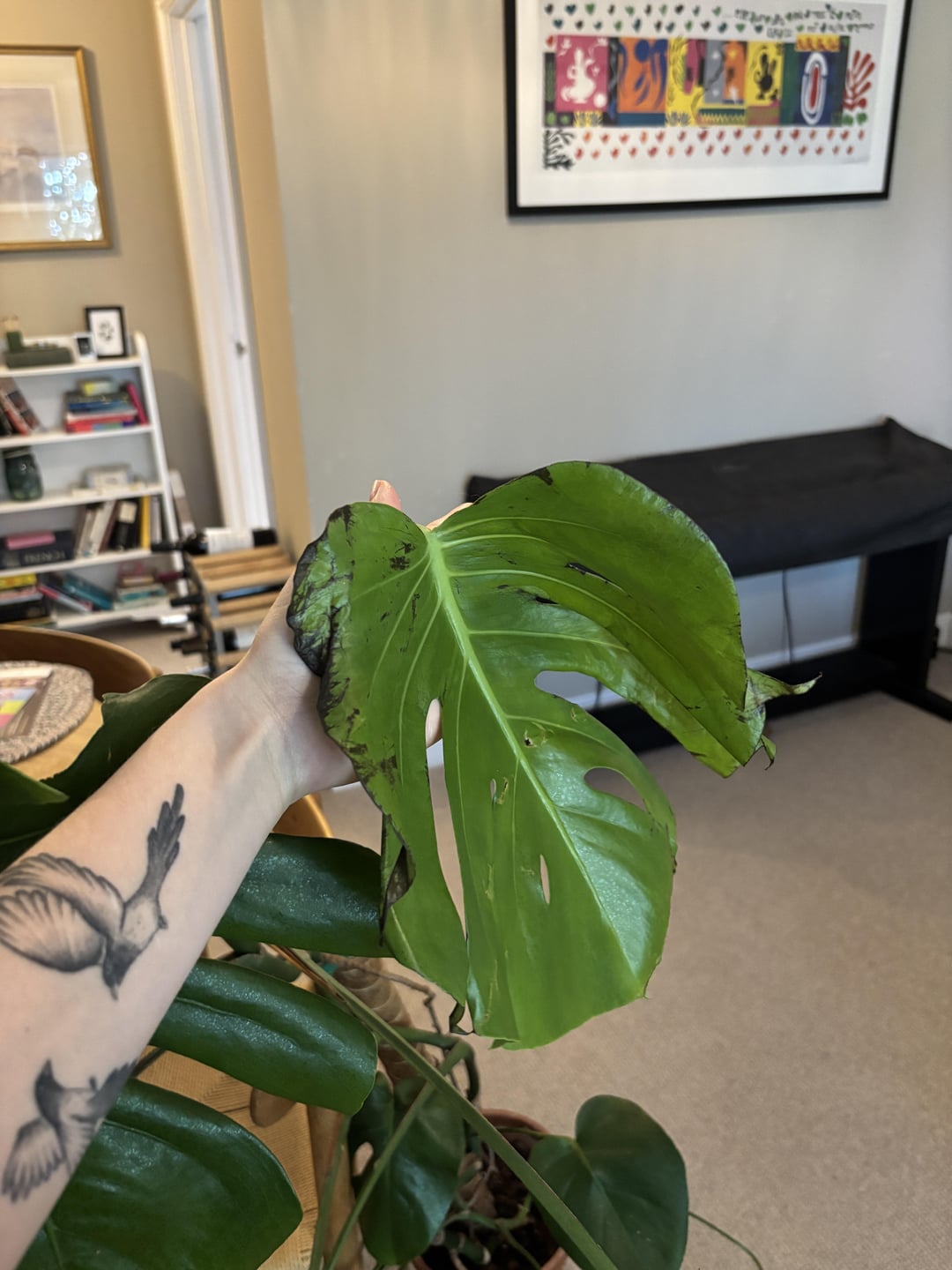 This is actually my work plant. She gets loads of light and is well watered (I am careful not to overwater, I know this could be stem rot but I really don’t think that’s the case from my watering habits). Another explanation I can think of is We’ve had the air con on recently as it’s been super hot, could that be it?
