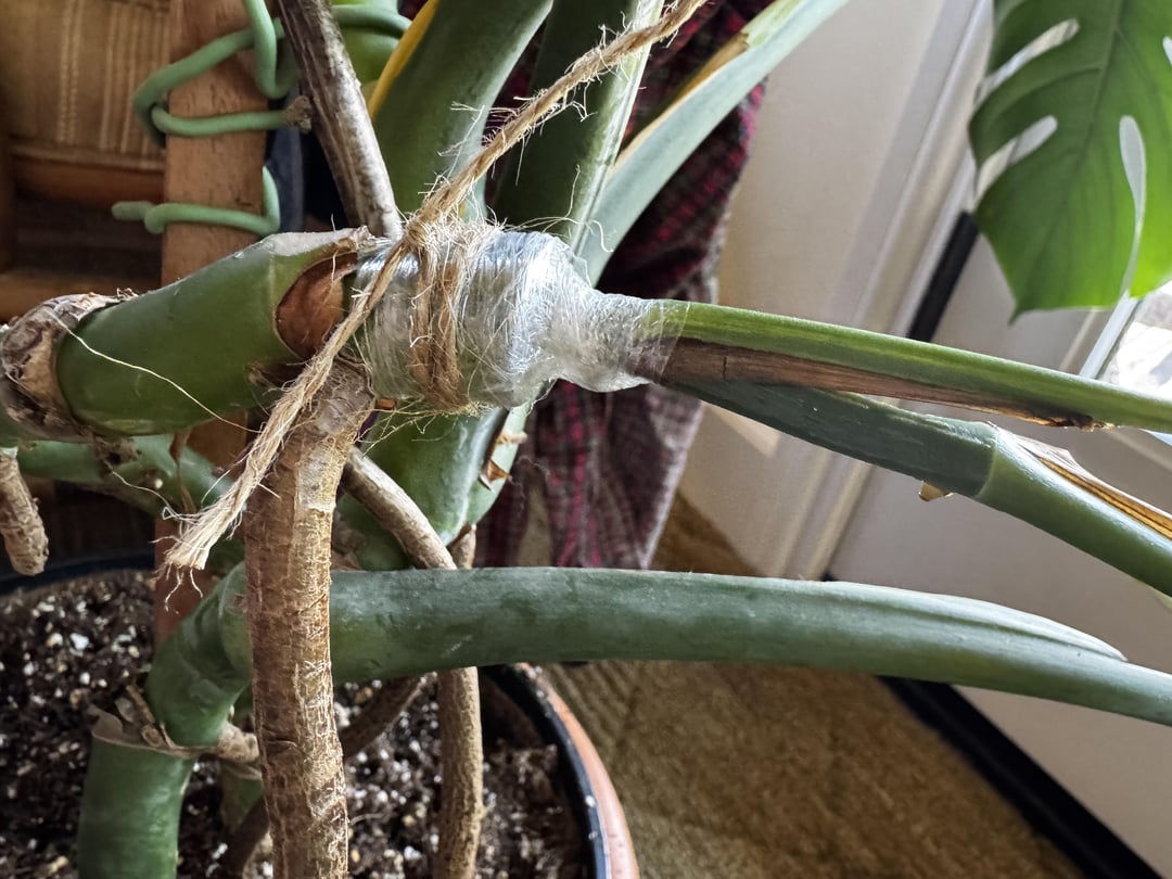March 21 this year it was time to chop and prop my monstera so I decided to try out a graft on where I cut the stem. I’ve looked online everywhere for something similar but nothing really comes up except for a YouTube video of a guy (Plant Tech?) somewhat successfully graft a monstera onto a pothos. I thought he should have done it the other way around since monstera have more robust roots. So I decided to give it a go.