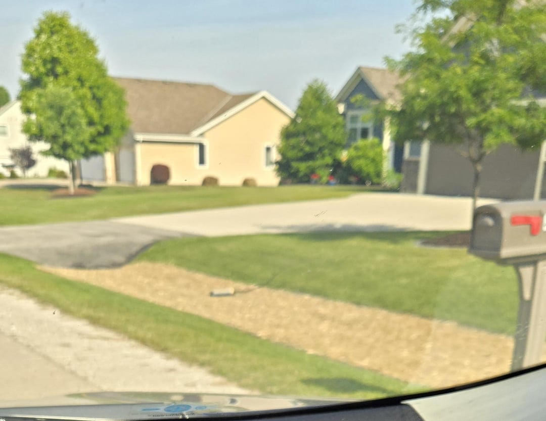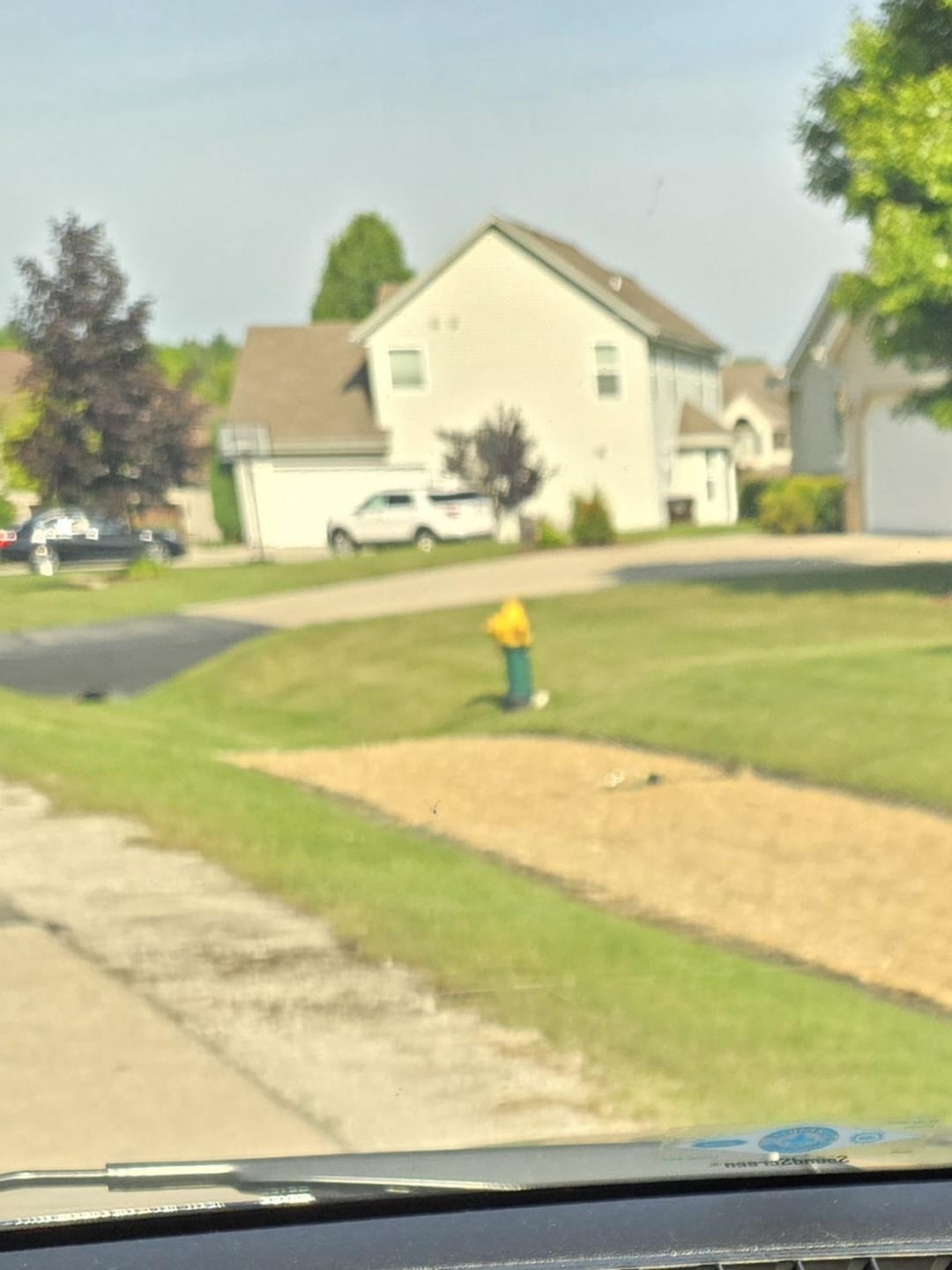 Where are these two pictures taken in relation to each other? They look like completely different houses and settings, given the neighbors houses and trees are different and the fire hydrant and mailbox in different pics.