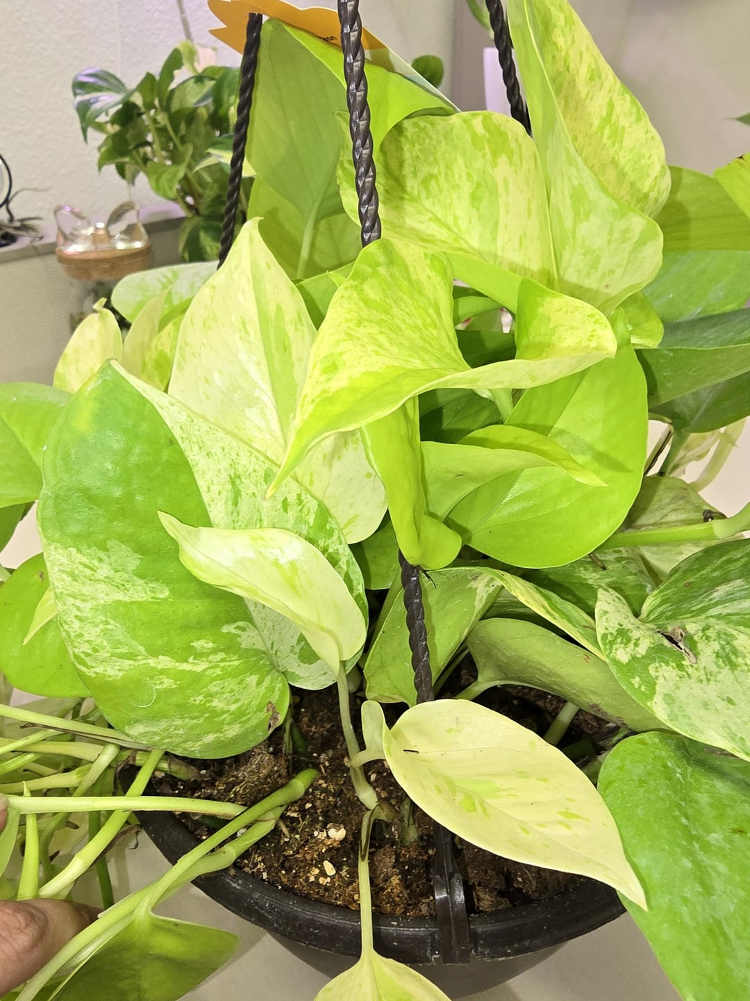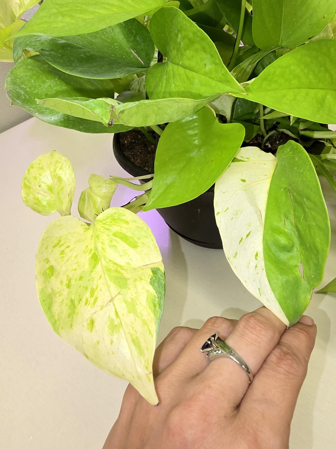 I'm so glad I decided not to be lazy and nap on my lunch break like I wanted but instead go hunt for sports at Lowes. Found the absolute coolest sport Neon ive ever seen. Its like a Marble Queen but Neon. I've actually slowly been collecting good variegated Neons to make a whole basket with but they all have either the darker green var(tech reverting) and/or the cream var. This is white. I have found some super cool vines etc but not like this. Its gorgeous. Very excited! Anyone else have a mutation like this? I found a handful online but doesnt appear to be super common.