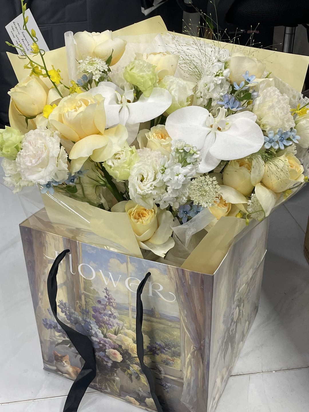 Zippity19 3 months ago Don’t touch the orchids,the oil from your skin will mark them.Stunning bouquet.đź’ś