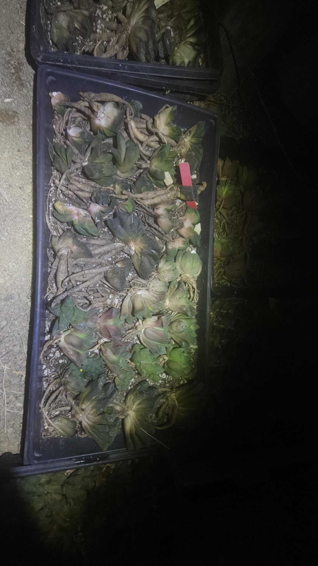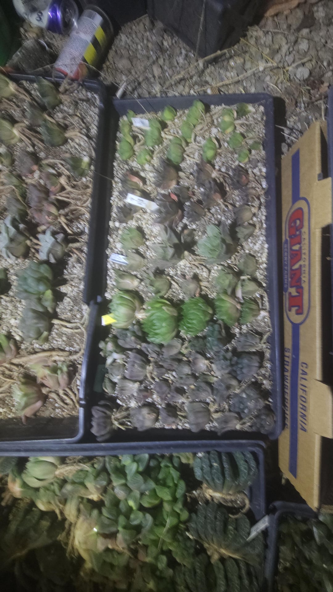 I also have trays of divisions from pots that were bursting from to much new growth. These also need to callus so are left on the ground in the shade of the greenhouse benches. It's easy to burn these, the unexposed parts are very prone to burning. Be sure of all angles the sun will pass; I'll throw an upside down tray on top for extra shade.