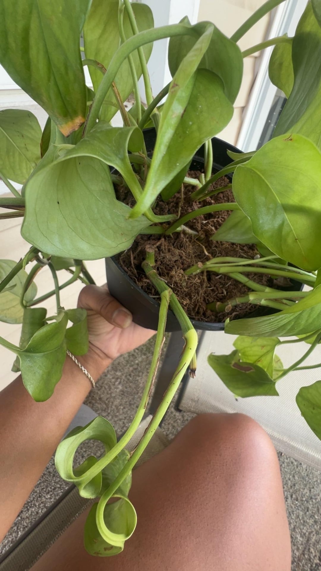 In addition to what others have said, I would take a clipping from it to start the propagation process! If you start with a leaf, move down the stem towards the roots. You’ll find nodes (bumps) along the stem. With a clean pair of scissors, make a cut so you have a piece that has 2-3 nodes on it. Stick it in water so the nodes are submerged, place it in indirect light, and you’ll have another pothos ready for planting in a few months! Pothos have a really strong rooting hormone, you’ll start to see white roots emerge from the submerged node.