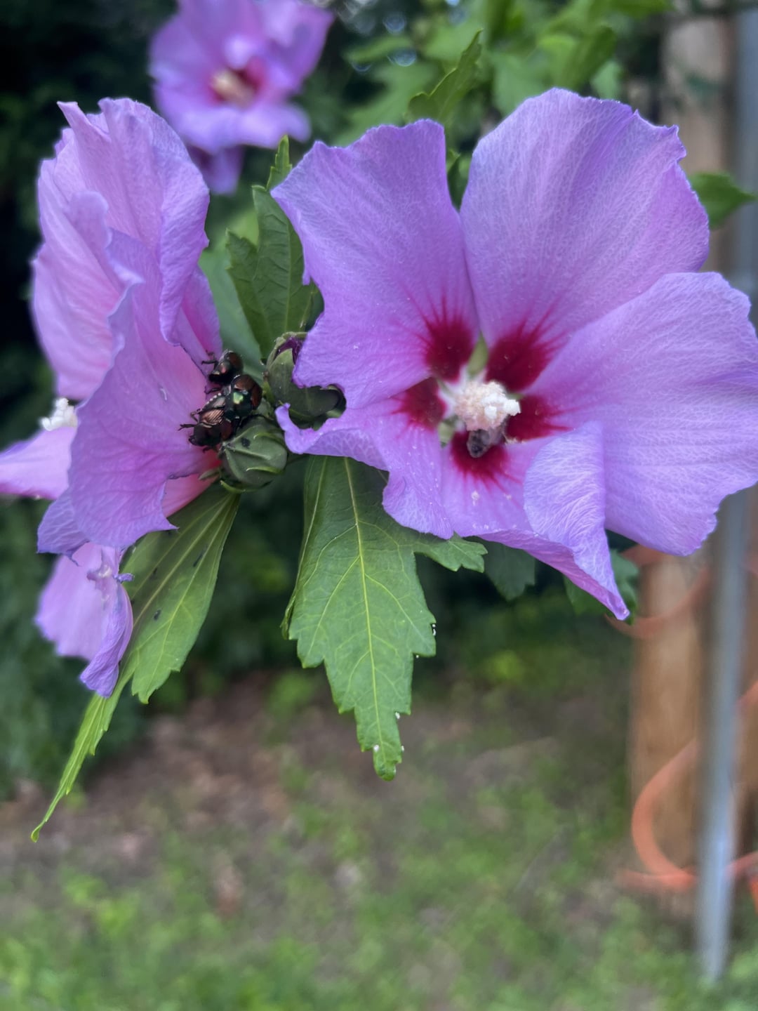 You’ll want to pull and remove those beetles in the last photo. Those are Japanese beetles and are defo destructive and invasive.