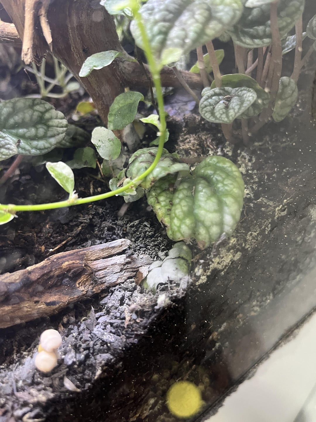 They’re mushrooms no? Good sign of a healthy substrate. I have the same in my enclosure, hella mushrooms spores that came out of nowhere but the springtails or millipedes in mine eat them so they should be okay. If it gets out of hand you may just have to clean it out yourself.
