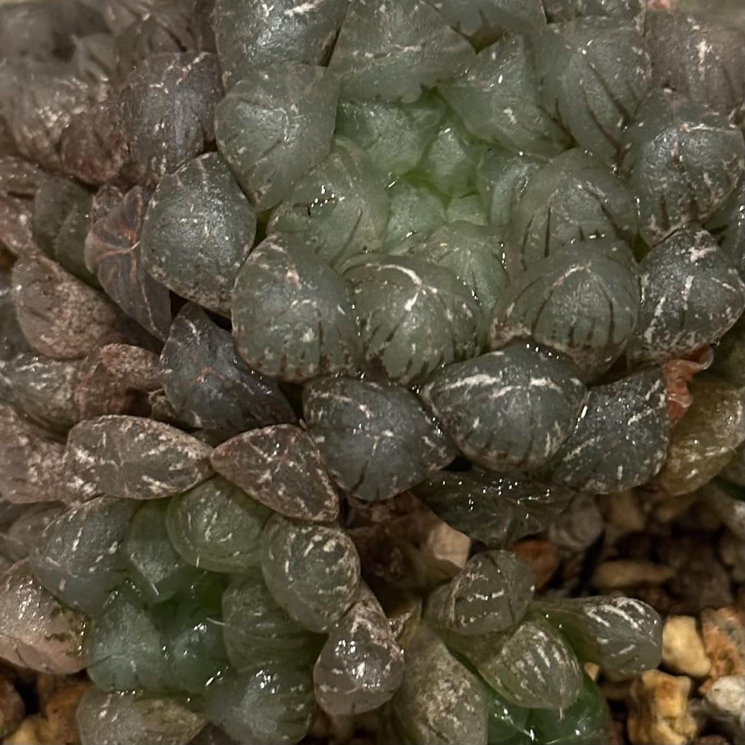 I’ve been moving plants around and this poor cooperi was way overdue for a water. So I pulled it out and…what the hell? White streaks and patches that don’t scrape, rub, or wash off. I’ve never seen anything quite like this.