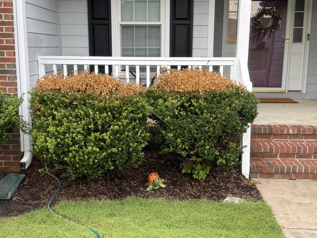 How hot is it? Sun out? I bet the top of the bush got cooked.