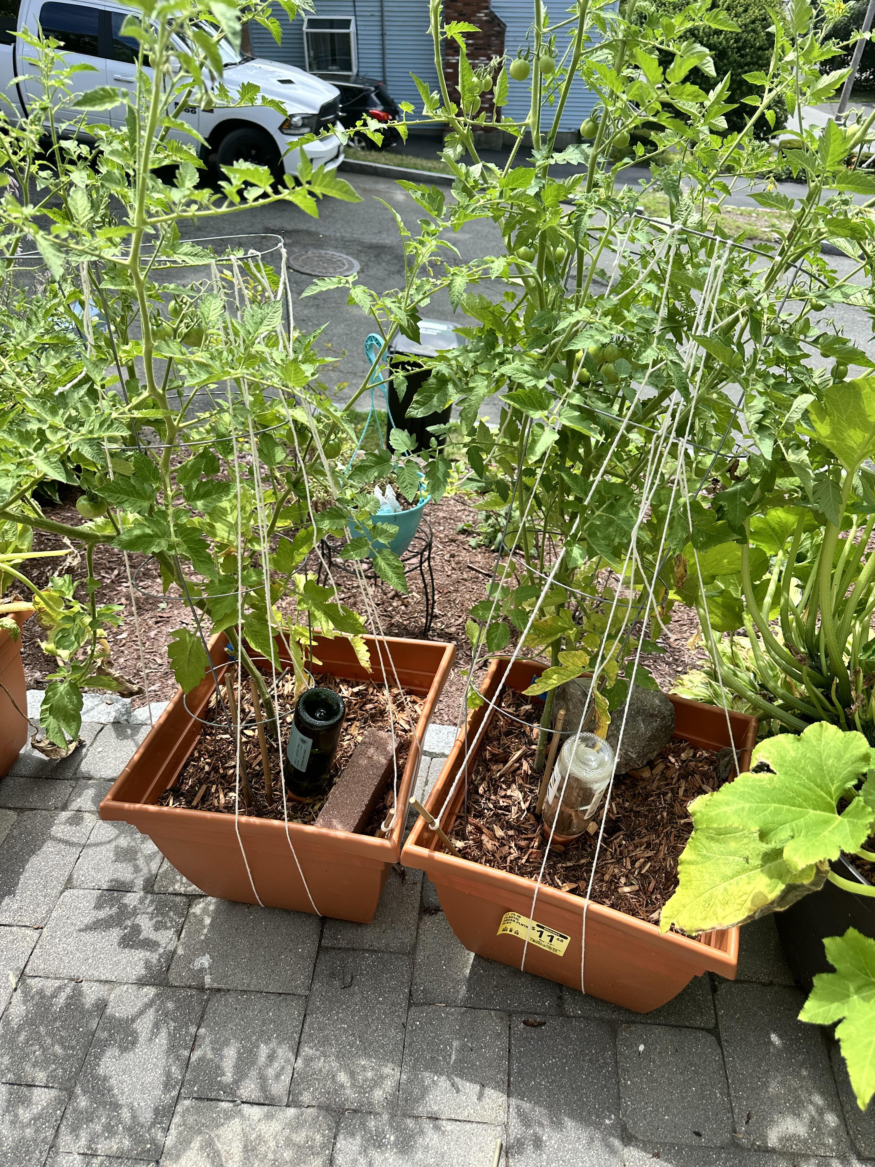 All of mine are like this but worse because they’re taller than me. Next year I will need to come up with a different solution because this style of tomato cage is pretty useless for indeterminates.