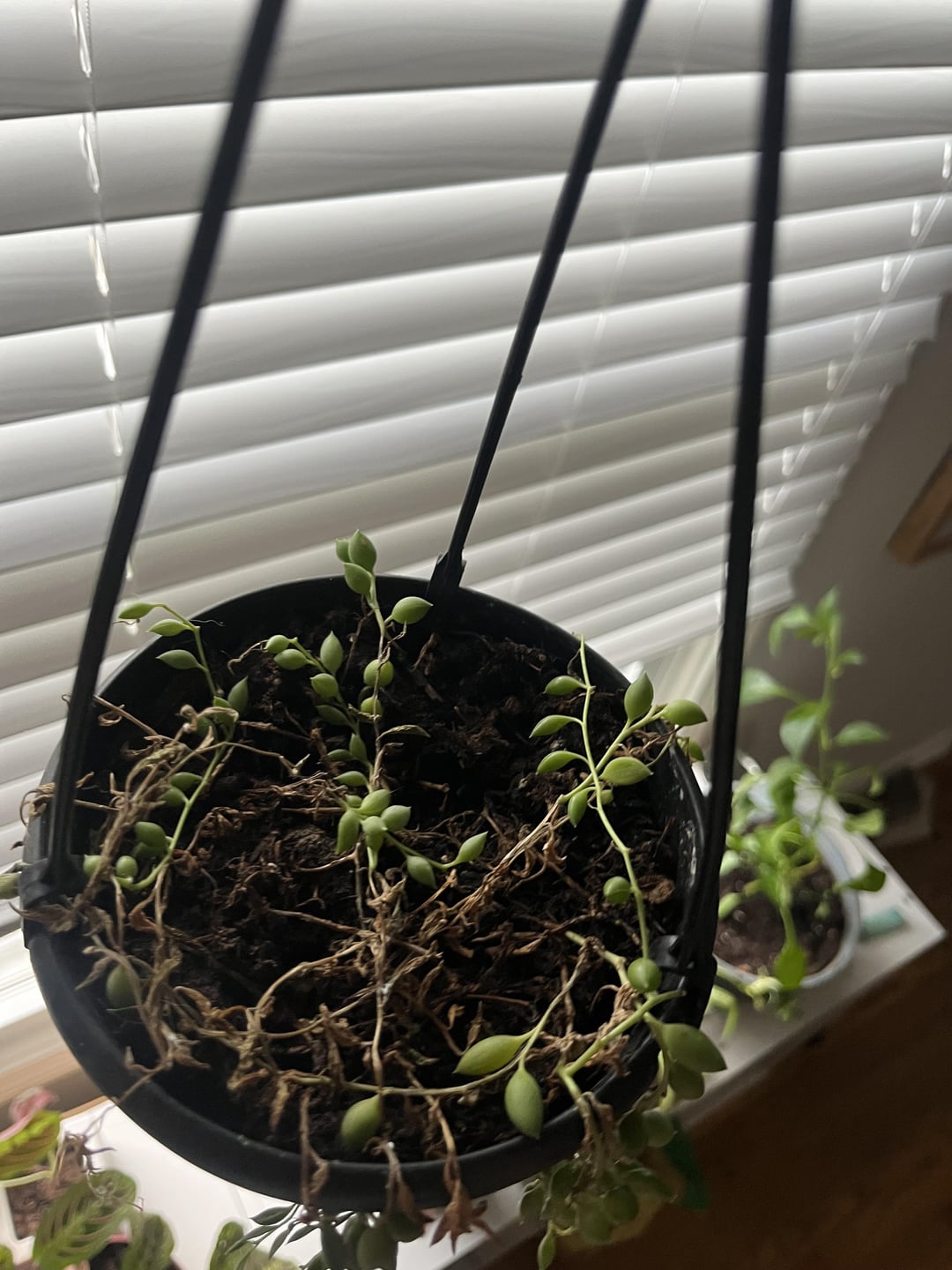 She probably has root rot :/ I would say your best bet maybe trying to cut the strings and try to propagate 🤷🏻♀️
