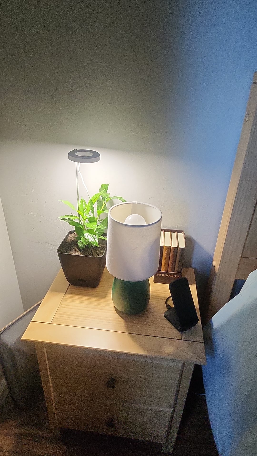 Stuck it in a relatively dark corner of my bedroom but added one of these grow lights with a timer from Amazon. Seems OK but it has only been a week.
