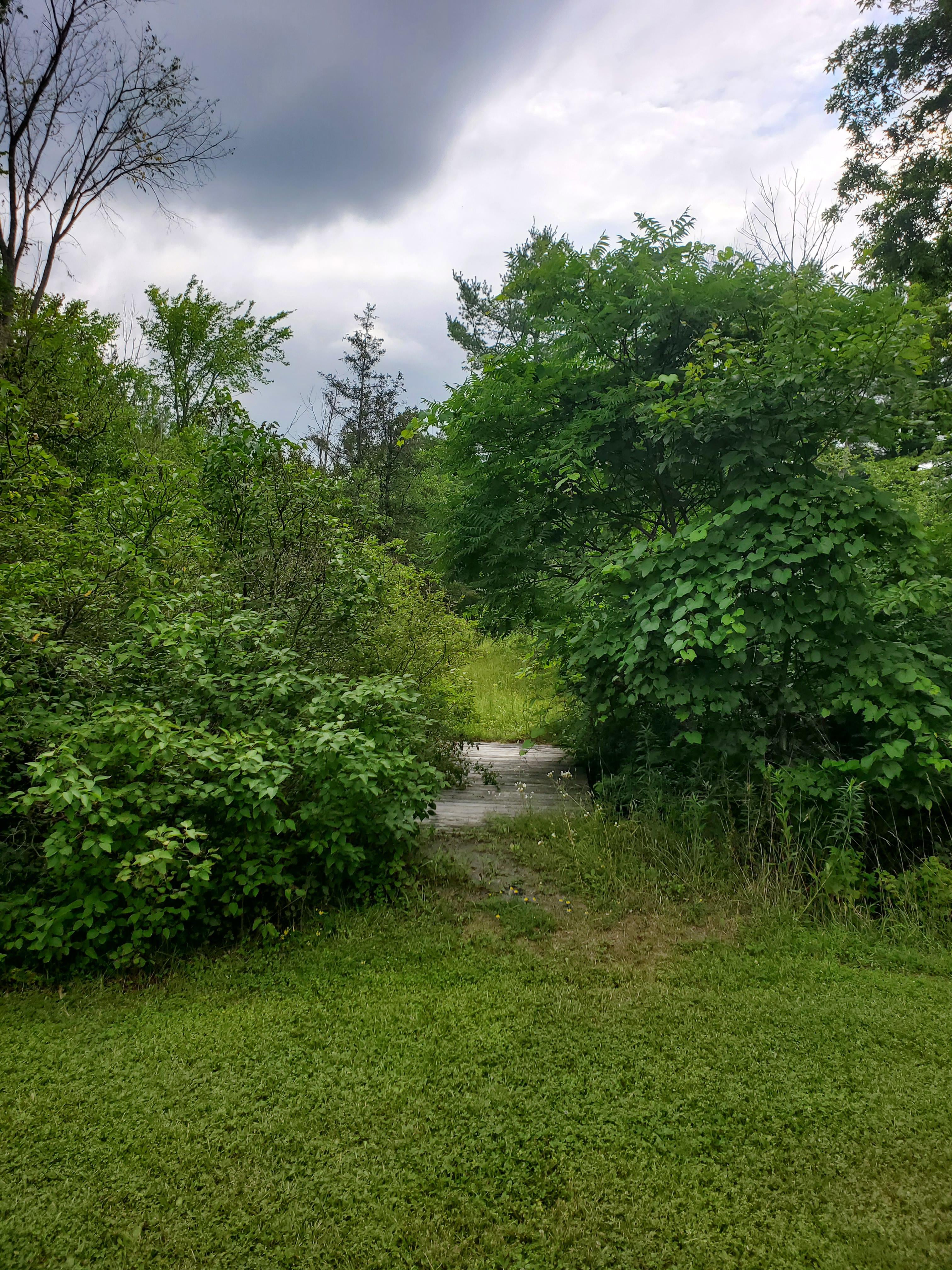 This is a bridge over a stream in my backyard. It's being overgrown and the same is true in many other areas here.