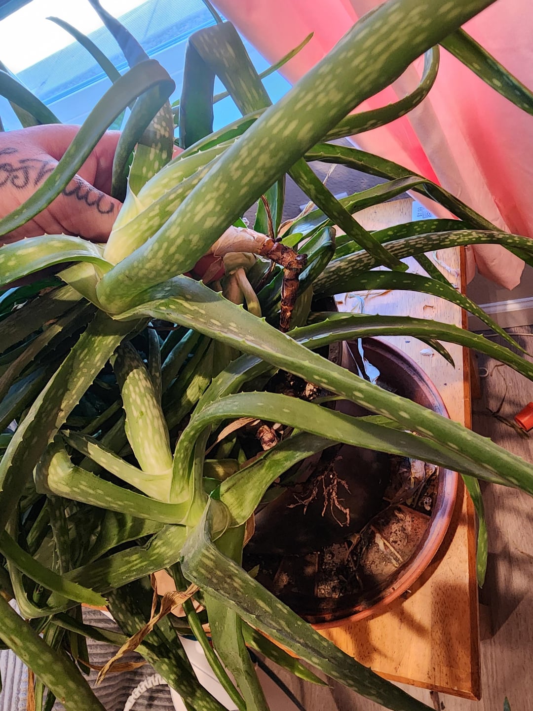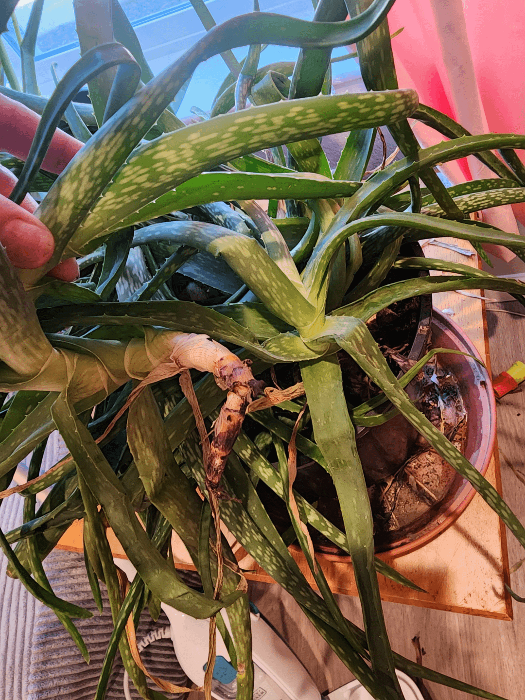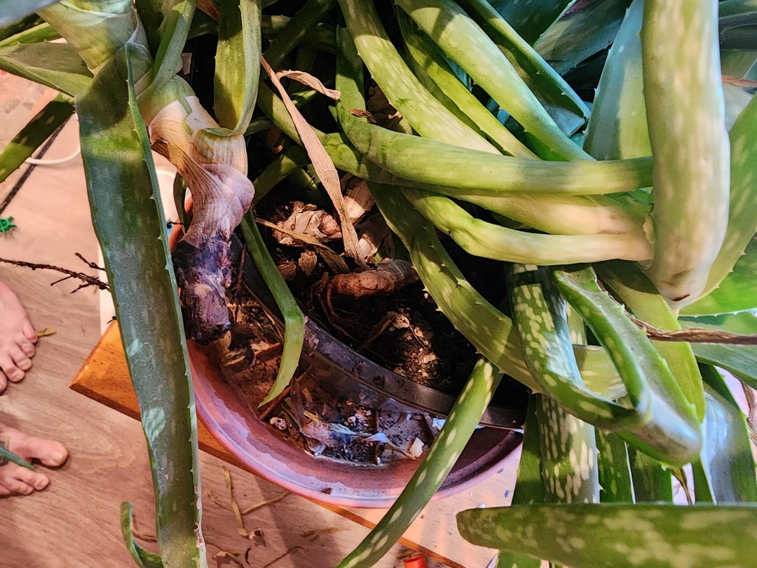 Once that time has passed completely remove the entire plant from the pot and sort out what’s good, bad and ugly…. Aloes like to be cramped, but within reason. If there are pups (baby aloes) you can either put them with their mother, in separate pots, give them away or throw them out.