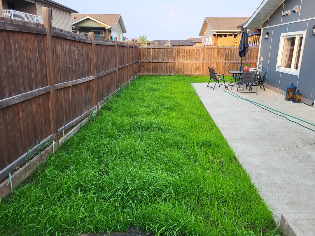 From here on out mow it as often as it takes to not take more than about 1/3 of the length of. That may be twice a week in the summer. I usually mow at 3 or 3 1/2″ depending on the sun exposure. Longer grass means deeper roots and less watering.
