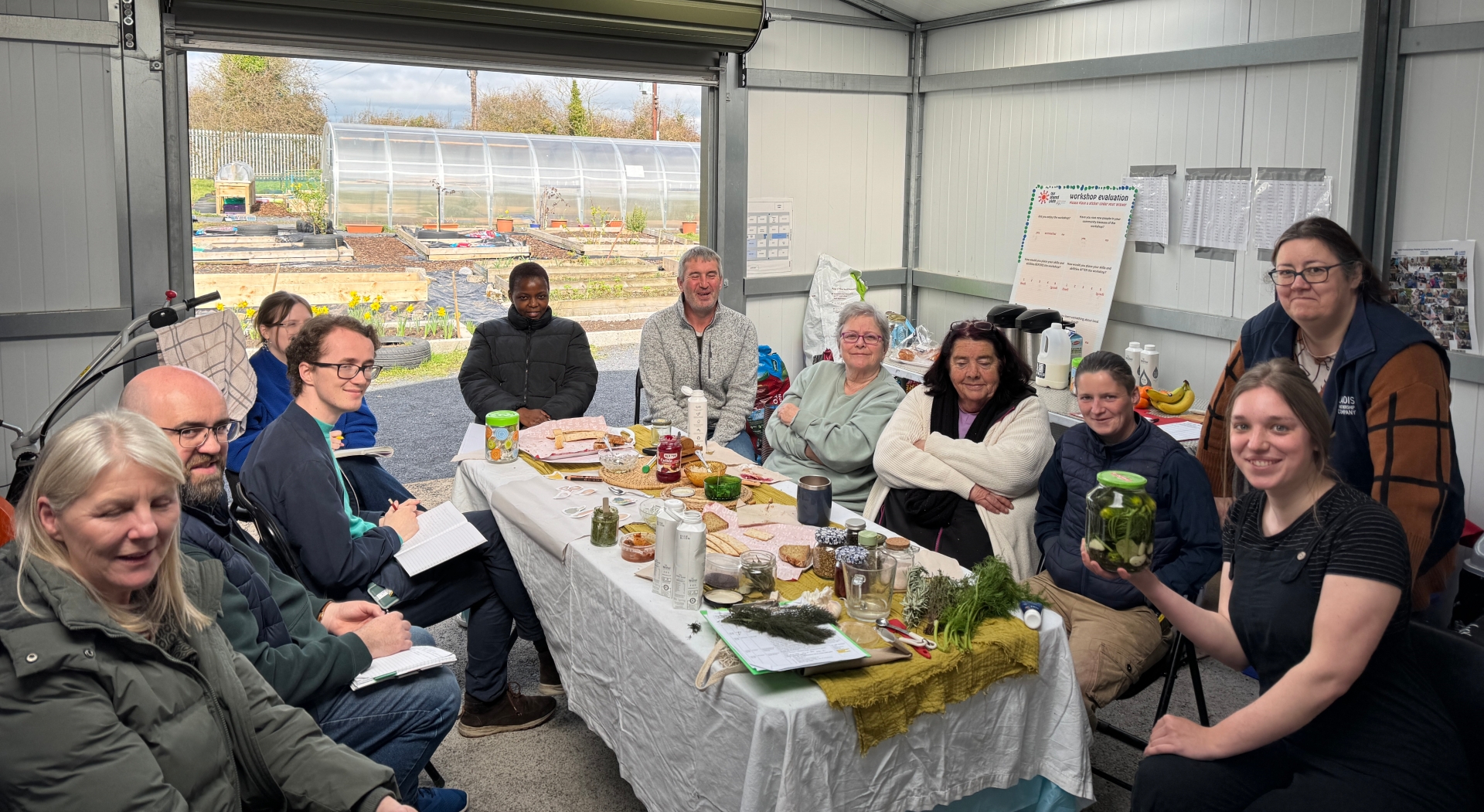 Food growers in O’Moore Place Allotments taking part in a Food Waste Prevention workshop.