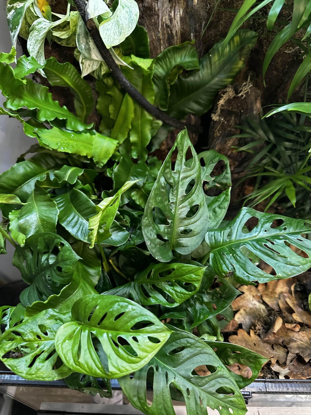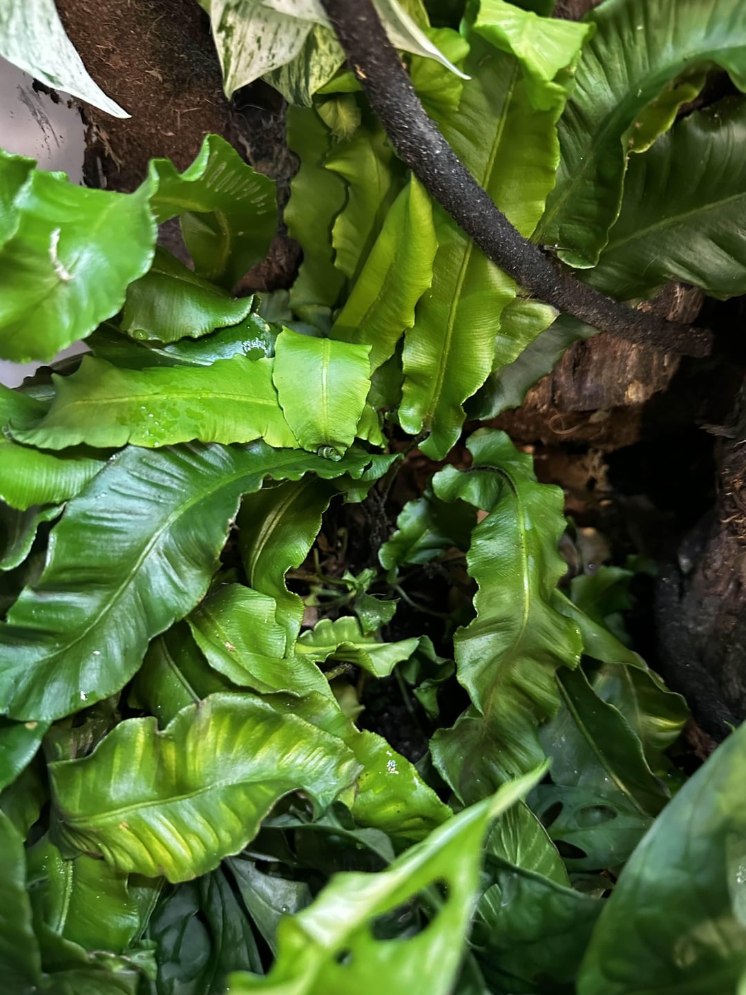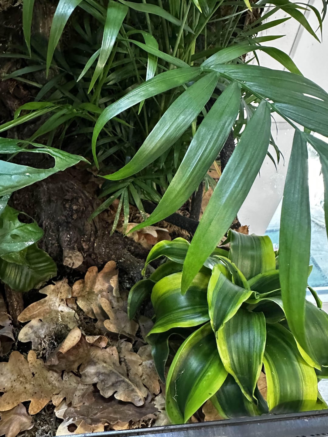 we are unsure if the plants on the bottom are thriving, we see some dry leaves (on the 7th picture). We’re also unsure if the big plant is thriving since its leaves are hanging low.. we think? The plants have been the hardest thing from this process to navigate :,) we also have some backround plants that obviously died, dont pay attention to those we assume its because the flower pot space is too small.