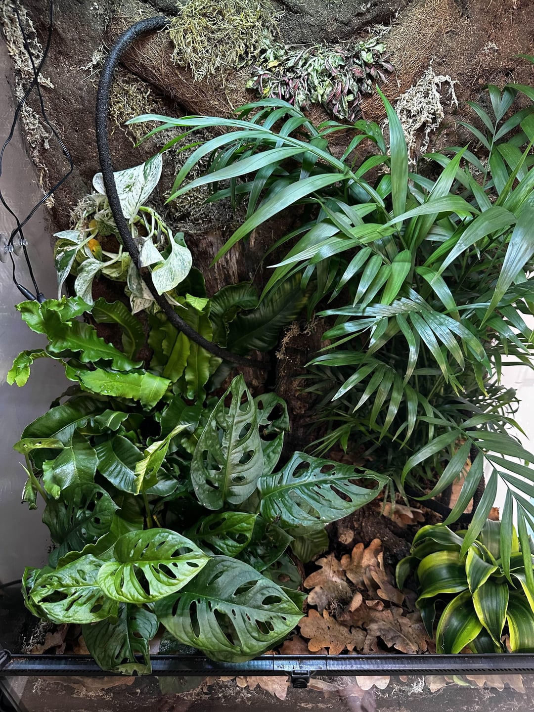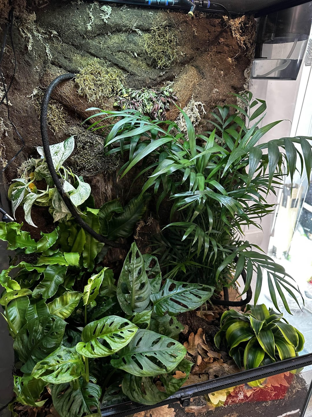 I have a similar set up for our chahoua and the plants at the bottom were not getting enough water–we also have a drain so I can tell if it is too much as the overflow tubing starts showing some but I’ve been able to dump half a liter in and still not see any in the overflow.