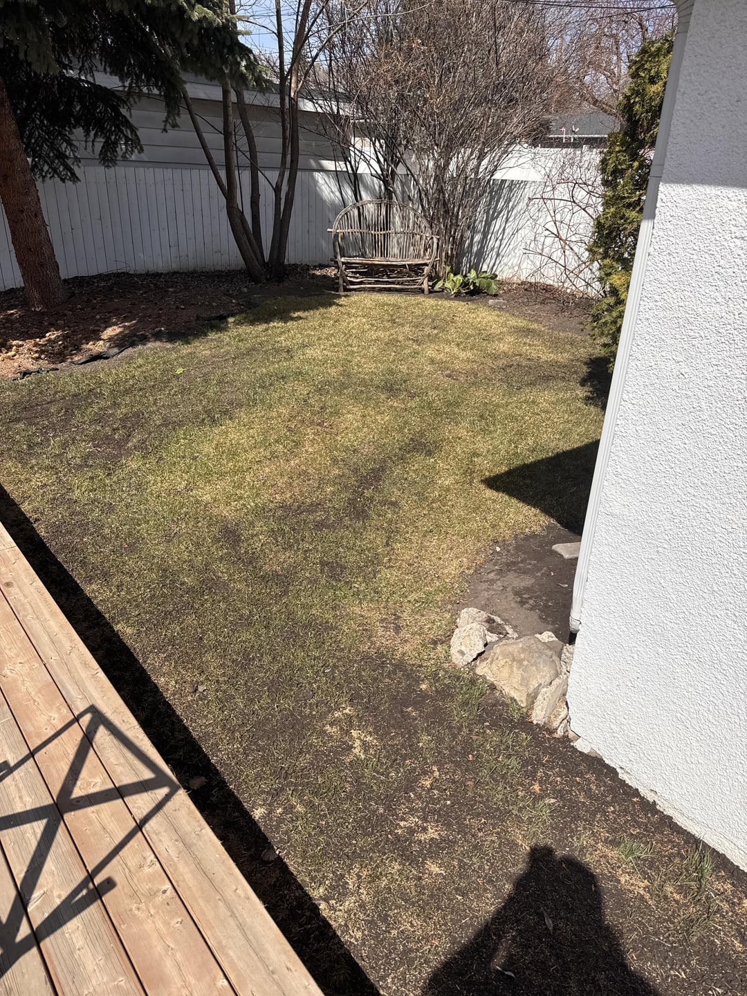 Dethatching (sorry not sorry), top dress, pre-germinated seed, and fert. Now we have the lawn looking good in western Canada.