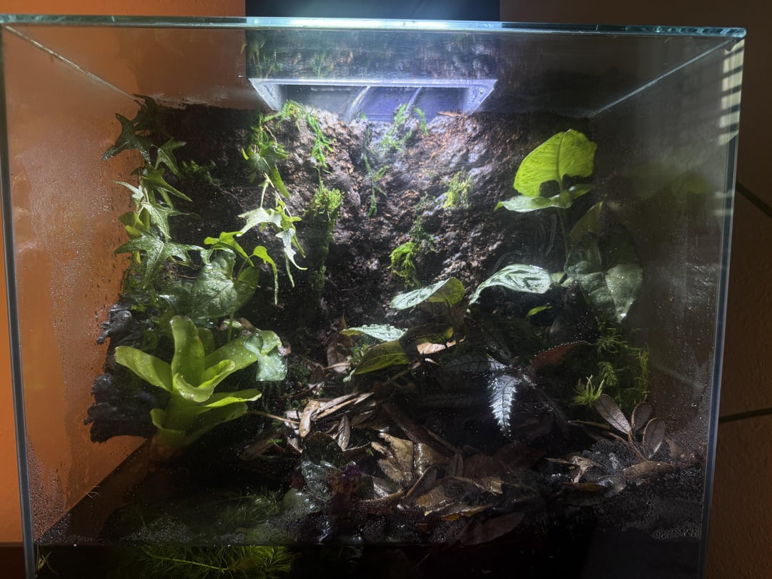 What do you think? It’s been planted for about 2.5 weeks, so far so good! Still thinking about what to put in here! Lmk what you think. by Quirky_Map_6501 vivarium 5 Comments everythingis_stupid 3 months ago I don’t know enough to recommend a critter but it looks great! cortisolandcaffeine 3 months ago Was going to recommend cubaris isopods until I saw the water. Not sure what you could keep here but I really enjoy it. Digital_Doodlez 3 months ago How many gallons is it? jammann44 3 months ago Isopods, springtails, maybe super small shrimp or crabs, snails, small salamander Additional_Bag_5304 3 months ago maybe you could look into some small crab or milipede species? I don’t know the size requirements of these so you’d have to check Write A CommentYou must be logged in to post a comment.