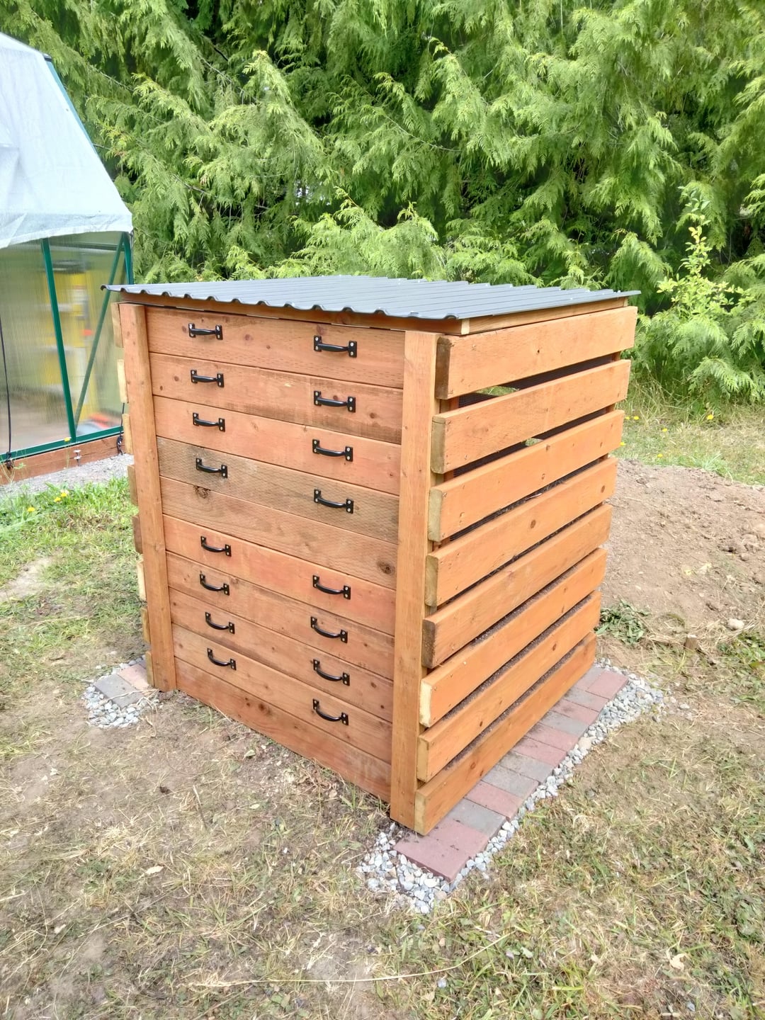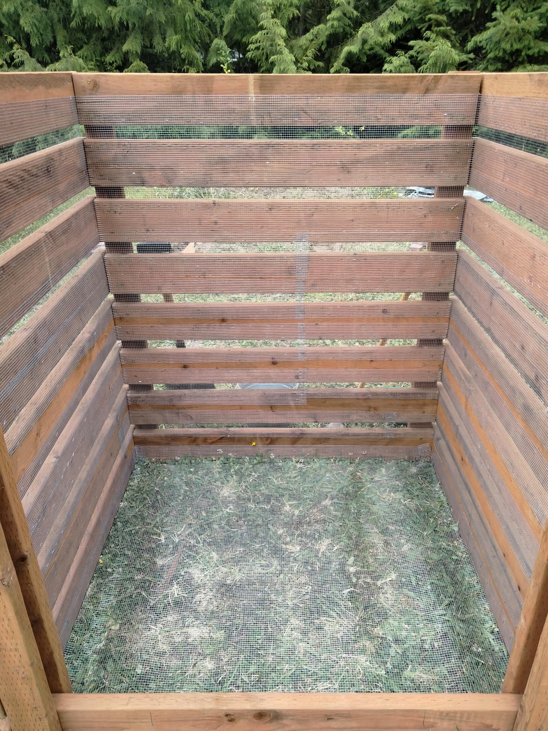 After nearly 2 years of composting using an improvised pile, I finally built a proper bin. It's lined with hardware cloth to keep rats out and features a lid to keep the pile from being water logged. I feel that I may have "over-engineered" it a bit, but it jas passed the 'spouse test' with flying colors 😄
