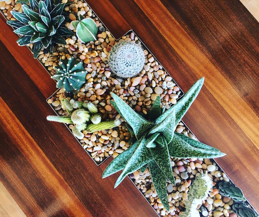 The texture combo of gasteria on sapele has got us all giddyđ Here’s an overhead view of the refreshed inset arrangement at @birdrockcoffeeroasters #livingtable #gasteria #sapele #ryanbenoitdesign
