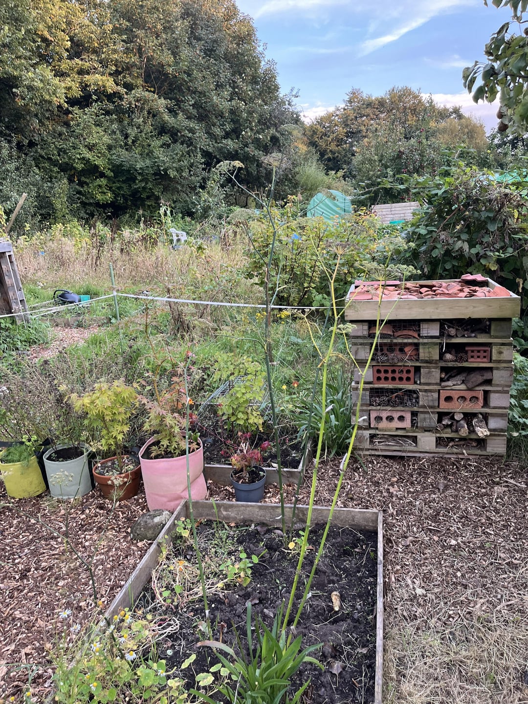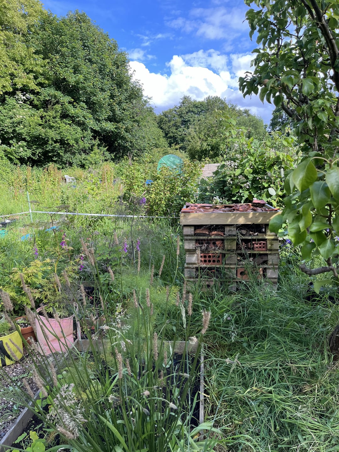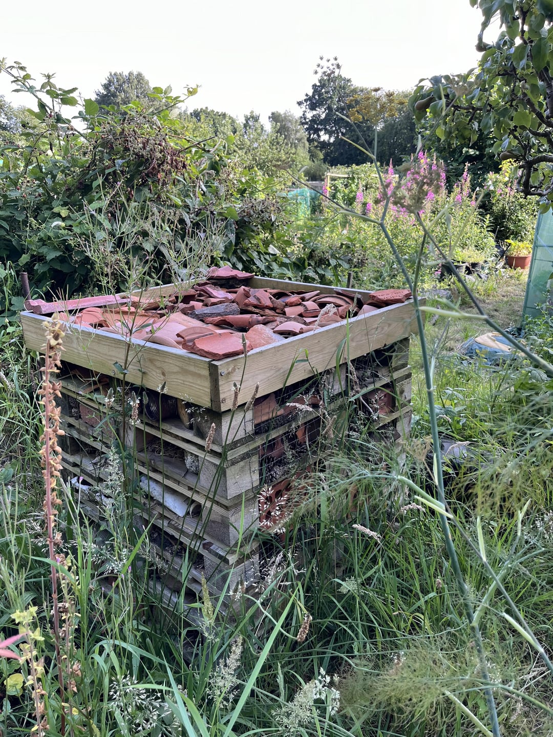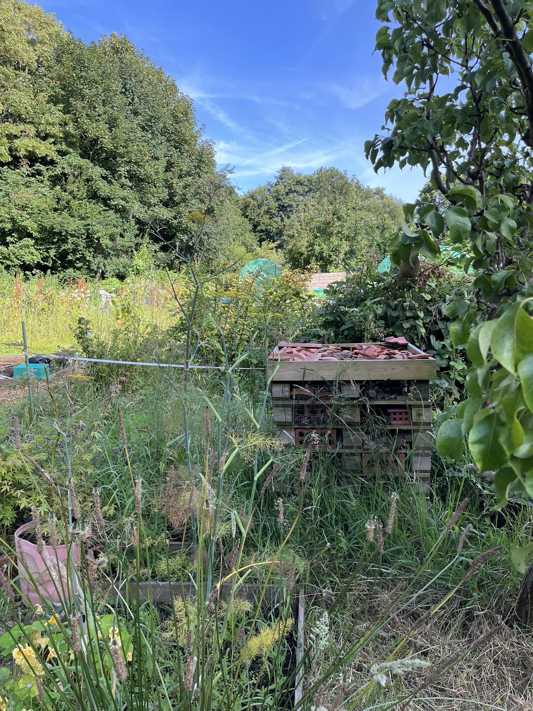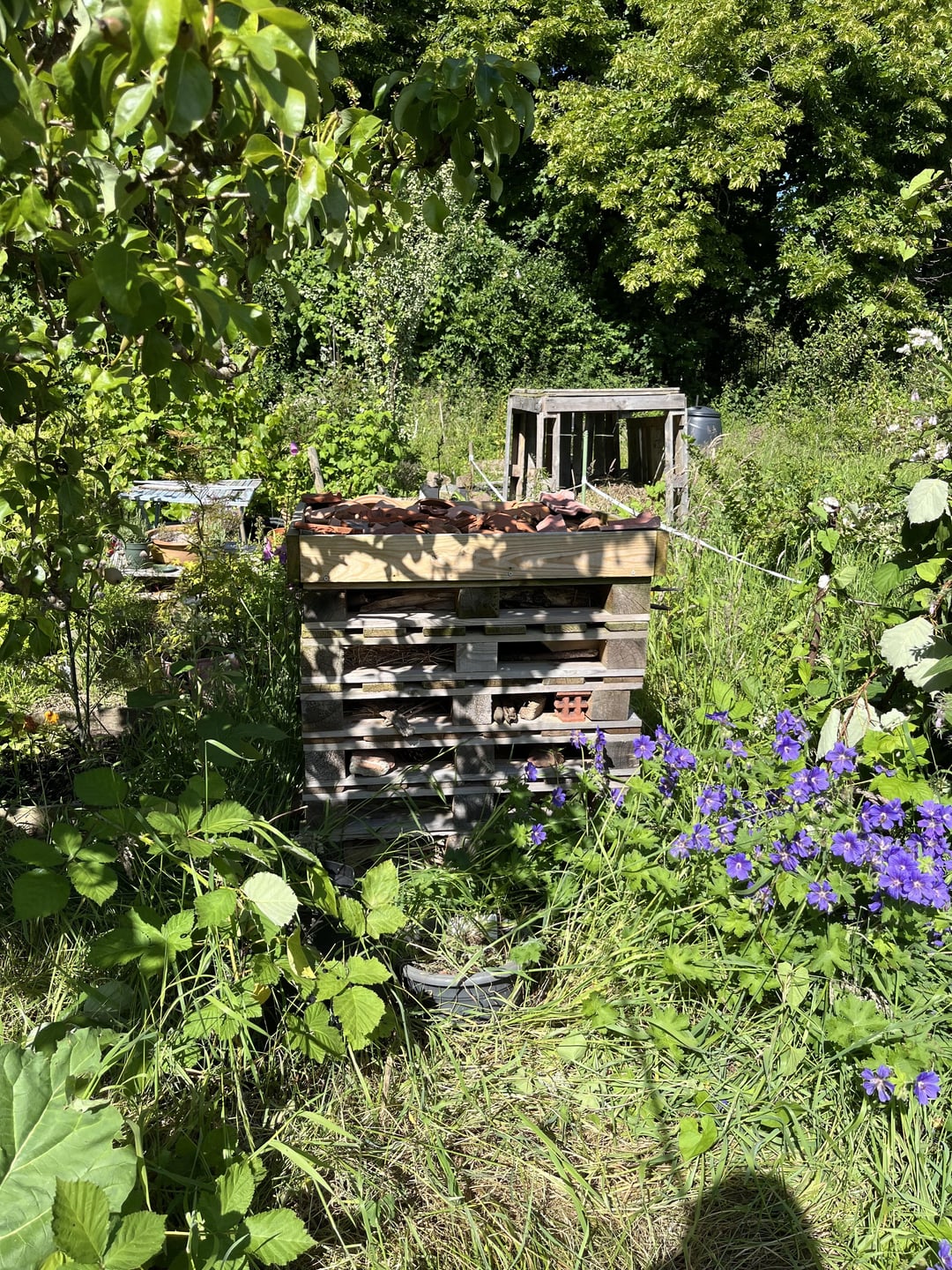 In June 2023 I was going through a really shitty time so on my birthday I made this giant bug hotel with my partner at my mums allotment. I absolutely loved making this and it’s still going strong. I no longer live in that city anymore so I don’t really get to go and see it anymore but my mum sends me photos every now and then. There’s quite a lot of snooty people at this allotment site who feel like they’re better than everyone else, and actively hate wildlife by putting toxic pellets, poisons and unsafe netting structures around, trapping wildlife. A few people made snooty comments about this being a rats nest but I don’t care. I’d be happy for any animal to feel at home on this plot of land. They have the right to use it just as much as we do, if not more.