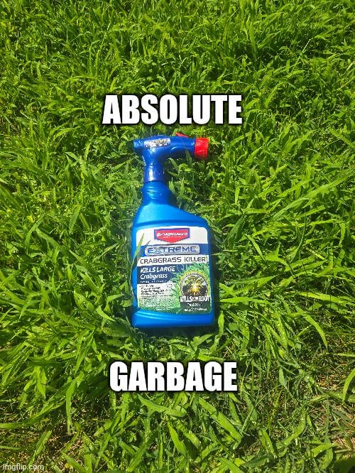 2. Just buy some generic Quinclorac and get a $10 spray can and mix it yourself, nothing in the store has near enough concentration to kill crabgrass