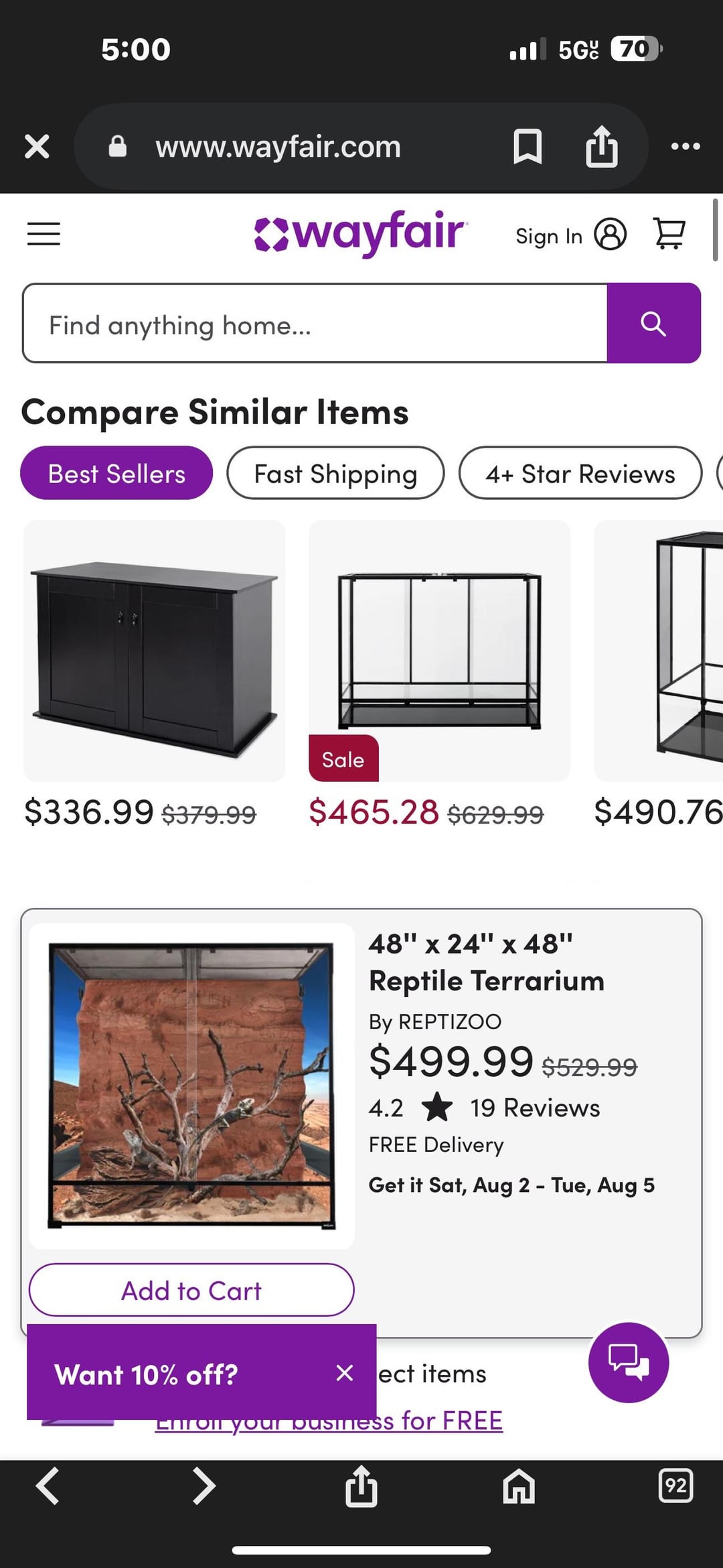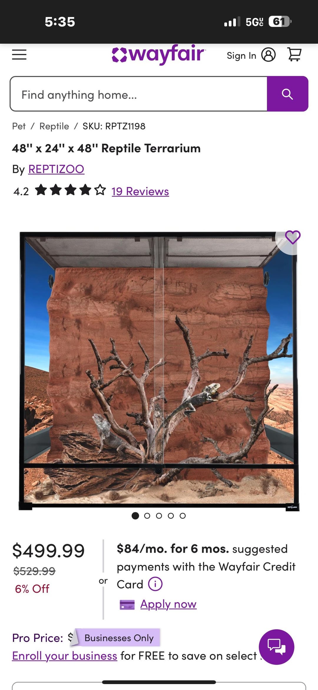 So I am looking for this specific enclosure from the brand Reptizoo, and $500-800 seems to be the price for something this high quality. My suspicions will not settle at all though, finding such a dramatic price drop on Reptizoo's Wayfair compared to the official site? I know nothing about business, but there has to be a catch? Reptizoo's site has it at $776, originally priced at $1100. Their Wayfair has it $499, originally priced at $530. Is this a steal or a scam?