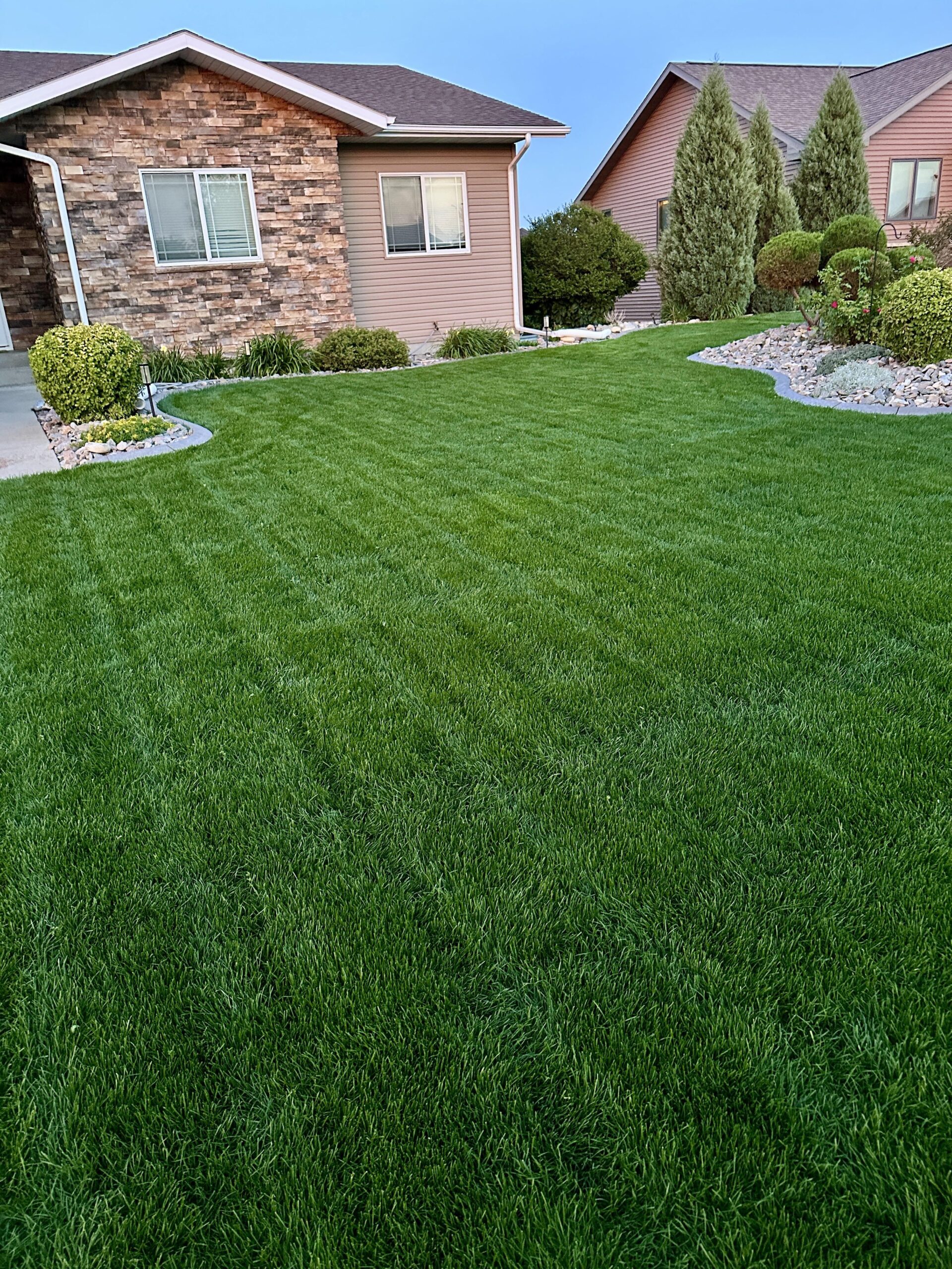 Makes me kind of wish I did hydroseed…but I also had to do 6000sqft…so it was a bit too pricey for me. Did standard broadcasting of seed and 20-10-10 with no peet moss or other protection. Automatic irrigation system watered it 7 times a day for 5 min per zone for 2 weeks, then 4 times a day for 10 min per zone for 3 weeks, then 1x a day for 25 min per zone since. It’s nice and green, but lots of weeds and lots of thin spots. Light green near sprinkler heads and where water tends to gather…which makes me think it diluted the fertilizer a bunch in those areas.