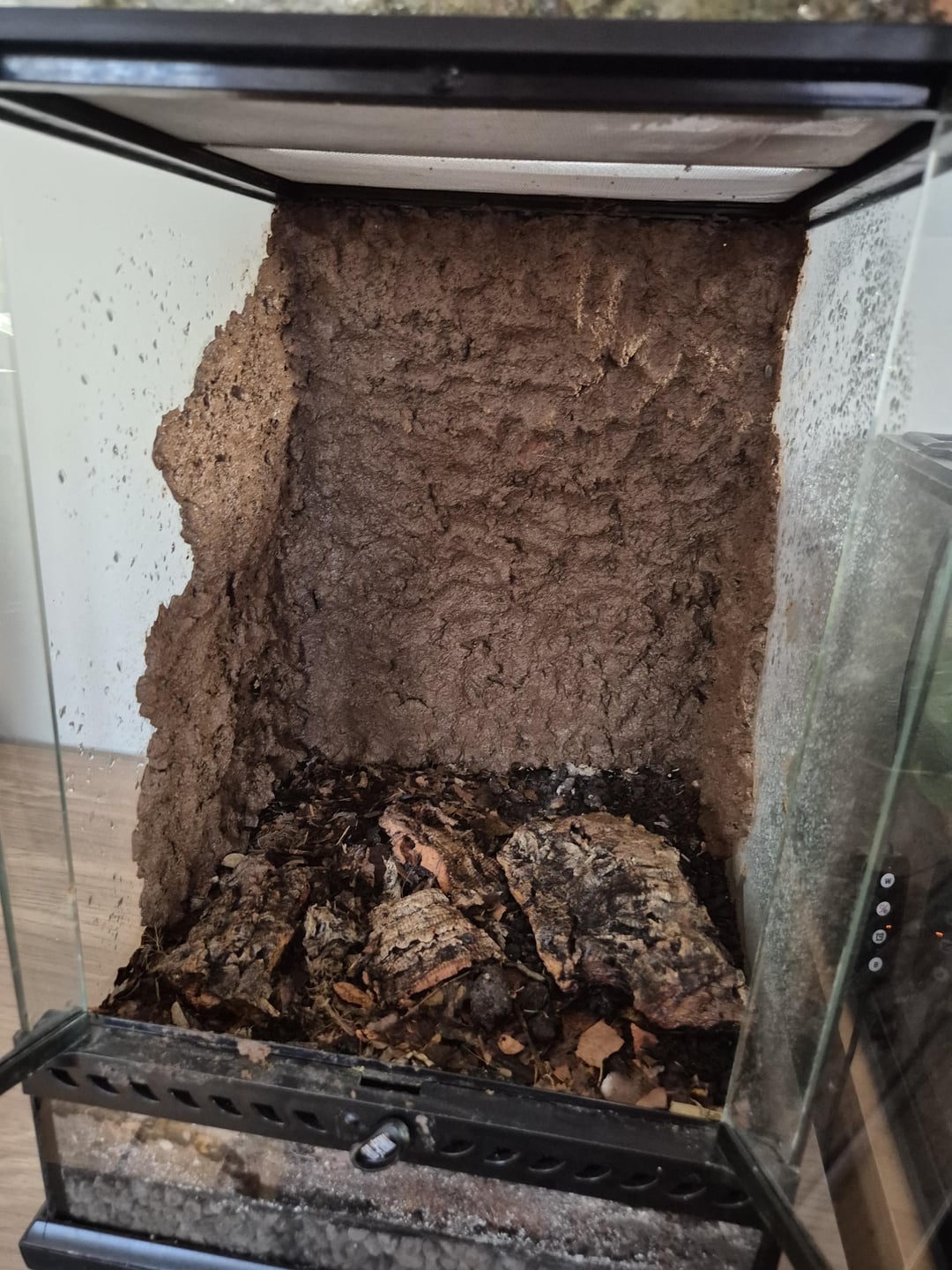 I made the goo with just the clay powder stuff and chemical and peat free topsoil with some spring water. The texture seemed right so I'm just praying to God it sticks and I don't hear the thud of sludge falling off the walls in the night 😂😭