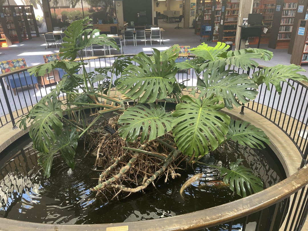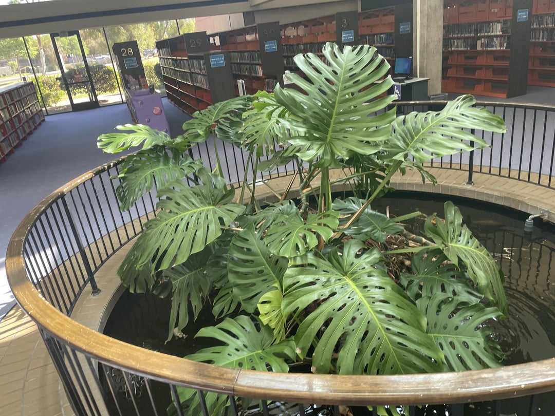 For those who don’t know our library has a koi pond and in the center is a monstera. It’s a closed ecosystem where the fish and algae actually fertilize the plant! After learning about the scale, I managed to get into the pond using waders, giving it a good chop and cleaning as many of the many of the leaves as I could. I guess the plant liked that because for the first time ever it FLOWERED!!!! We got a fruit, but were sadly a little too eager and inexperienced so it didn’t survive long enough for us to taste.
