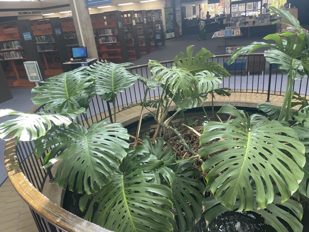 You may remember my post last year “Massive Monstera is Sick” when I was trying to identify what was on the leaves of the Palm Springs Public Library’s 50 year old monstera (it was scale, ew).