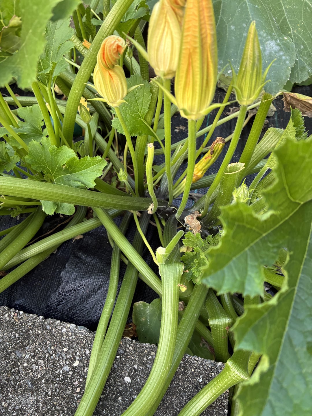 Came out to water my garden today and was wondering if my zucchini plant might be under attack by something? Leaves are starting die and I’ve noticed some flowers have fallen off