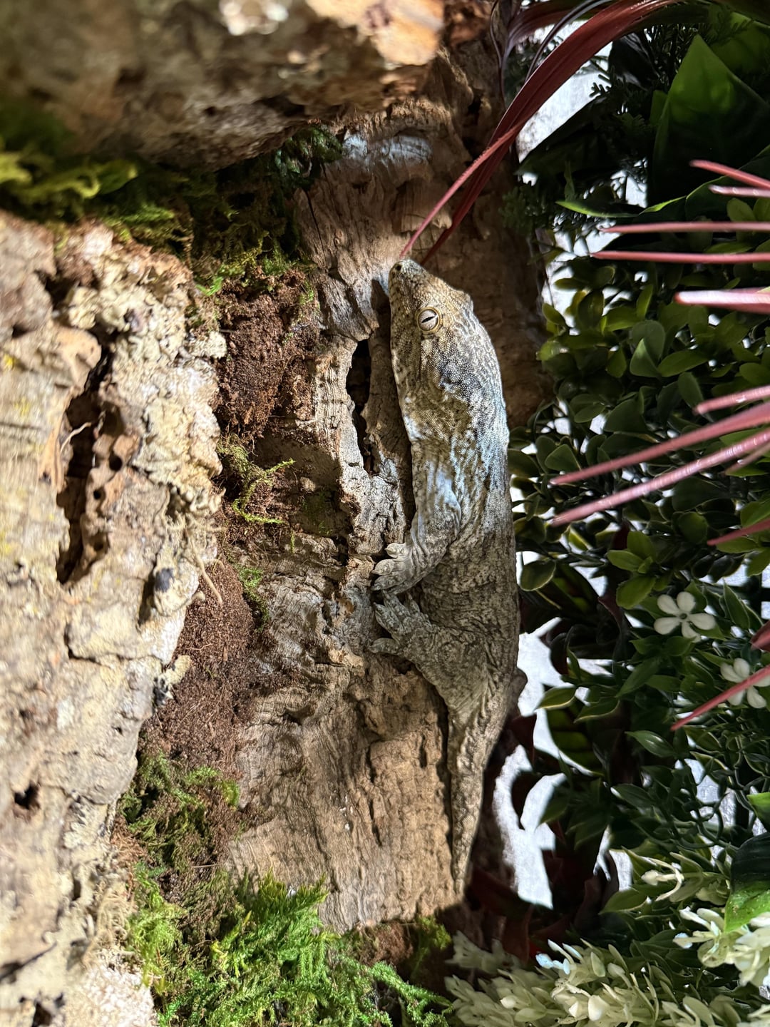 She’s already starting to settle in and explore her new space… and of course, perfectly camouflaging herself like the dramatic diva she is. 💁🏼♀️🦎💚