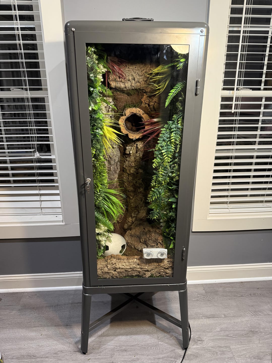 My IKEA FABRIKÖR cabinet is officially transformed into a custom vertical setup for Barbara Jean, my Leachianus Gecko Queen 👑