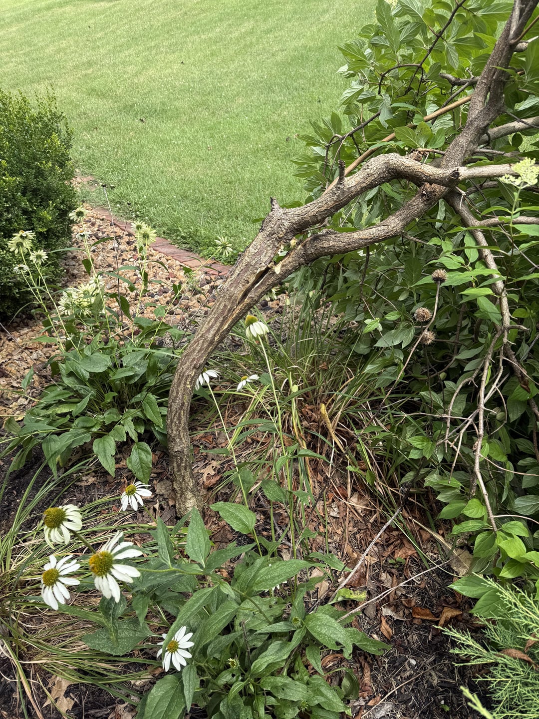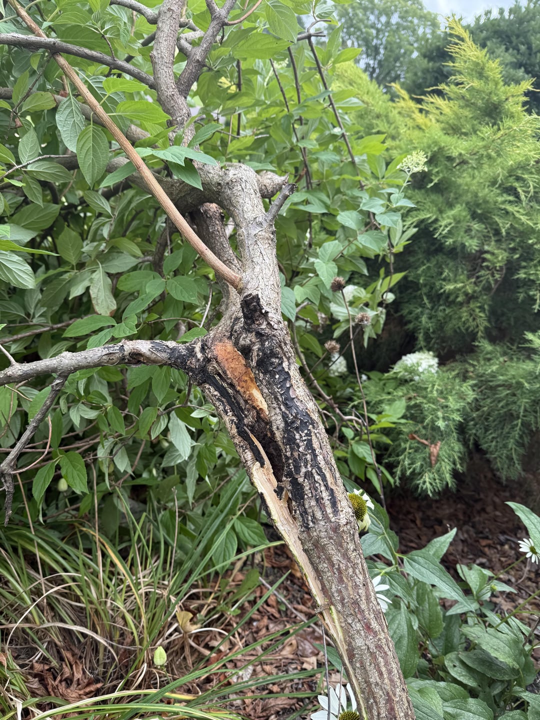I believe this tree was struck by lightning, and needs to be cut down. Is there any saving any of this tree, or is the whole thing a goner? It fit really well in the front landscape, so hoping to not have to spend a bunch of money/time to clear out roots and plant something new.