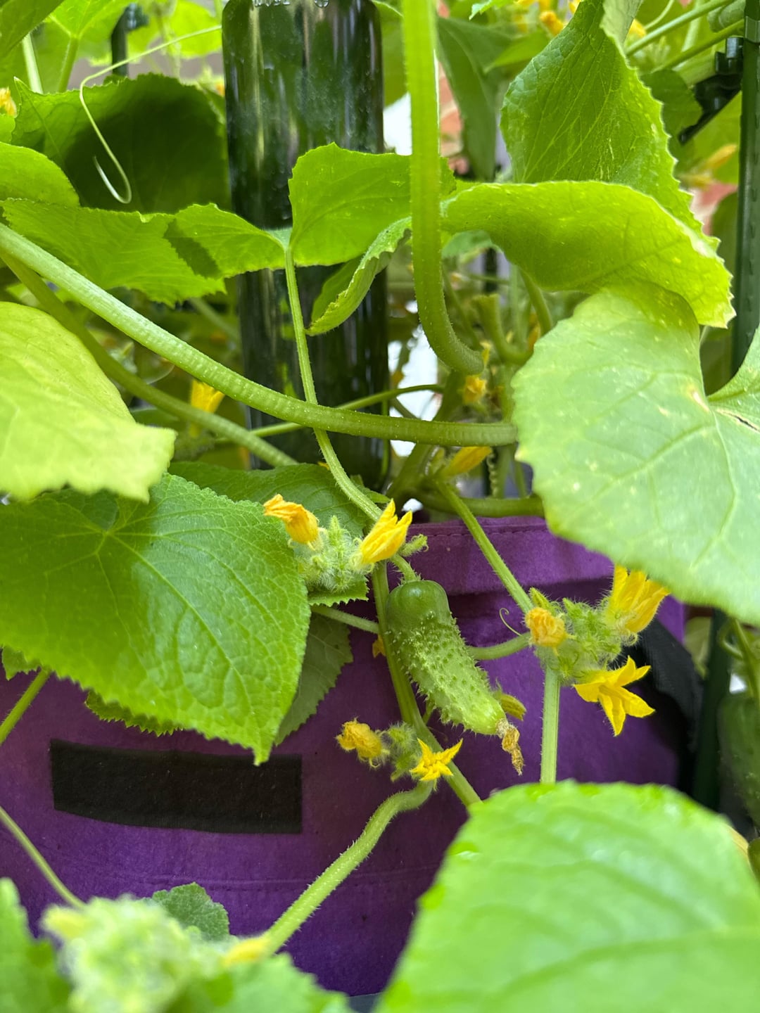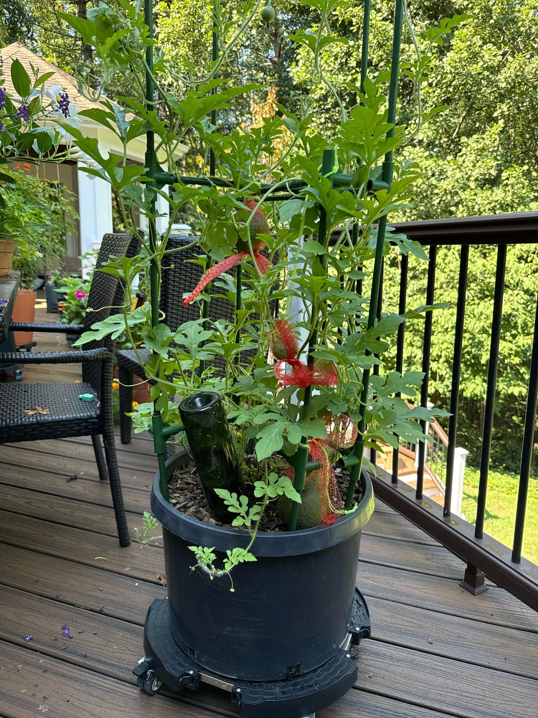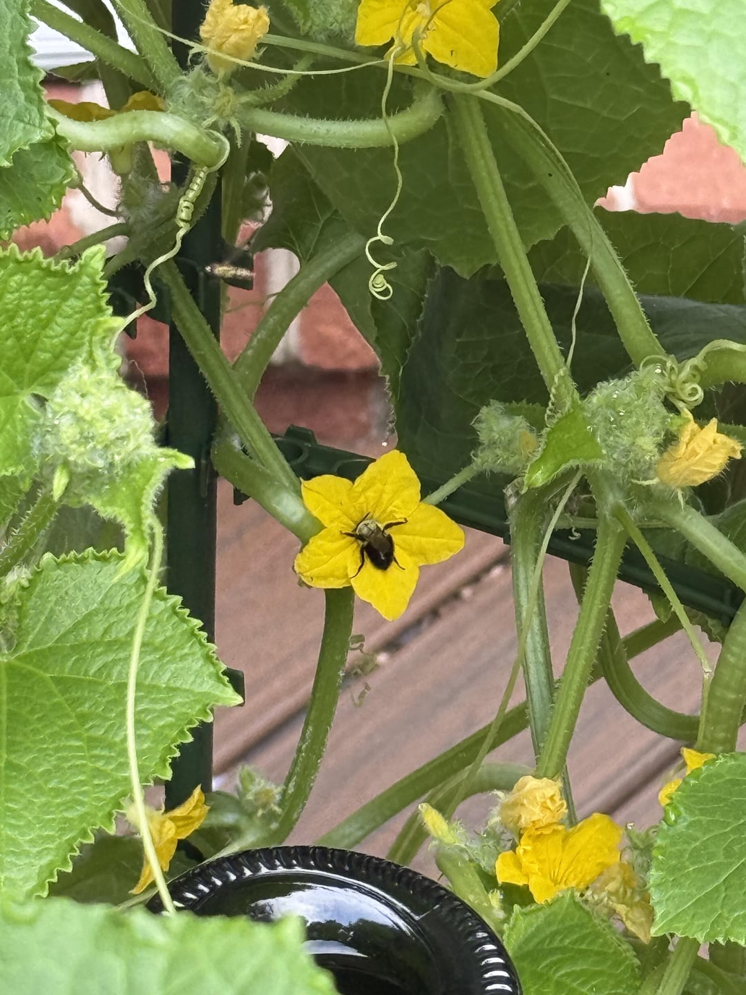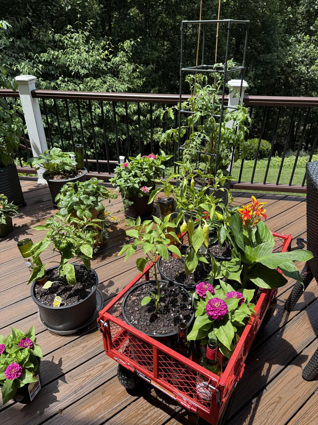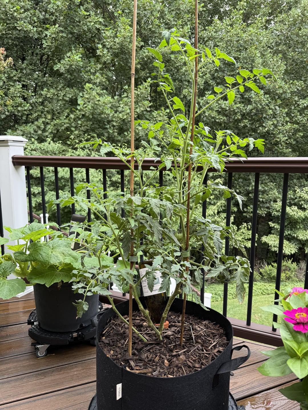 If you’re doing a patio or deck garden, grow vertically whenever possible. It saved so much space, helped the pollinators, made it easier for me to inspect for pests, AND I think it probably helped control moisture related disease.