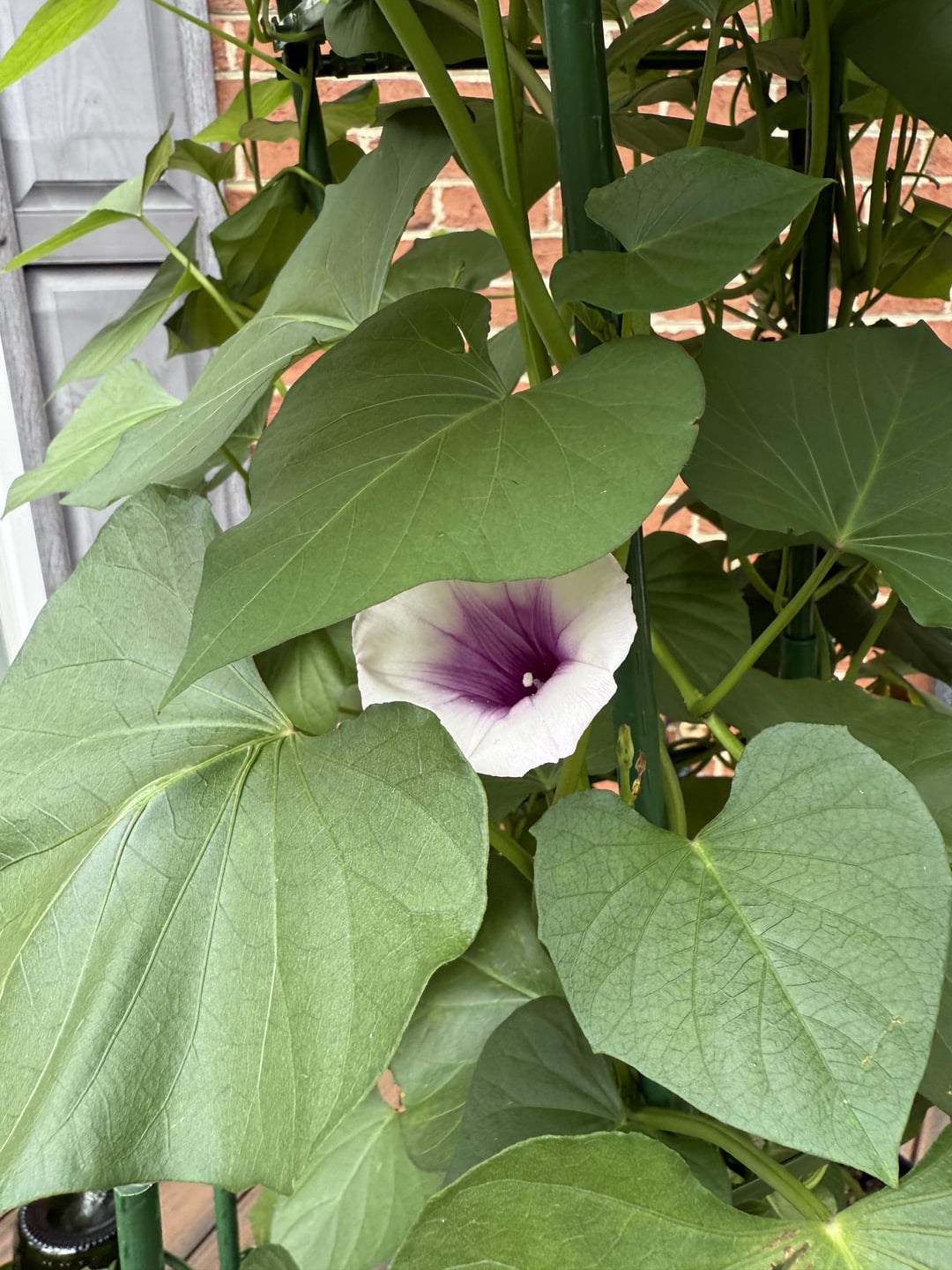 -those growing tomato cages/trellis on Amazon that you can make taller as you need them. Used them for tomatoes, sweet potatoes, cucumber, squash, beans and peas